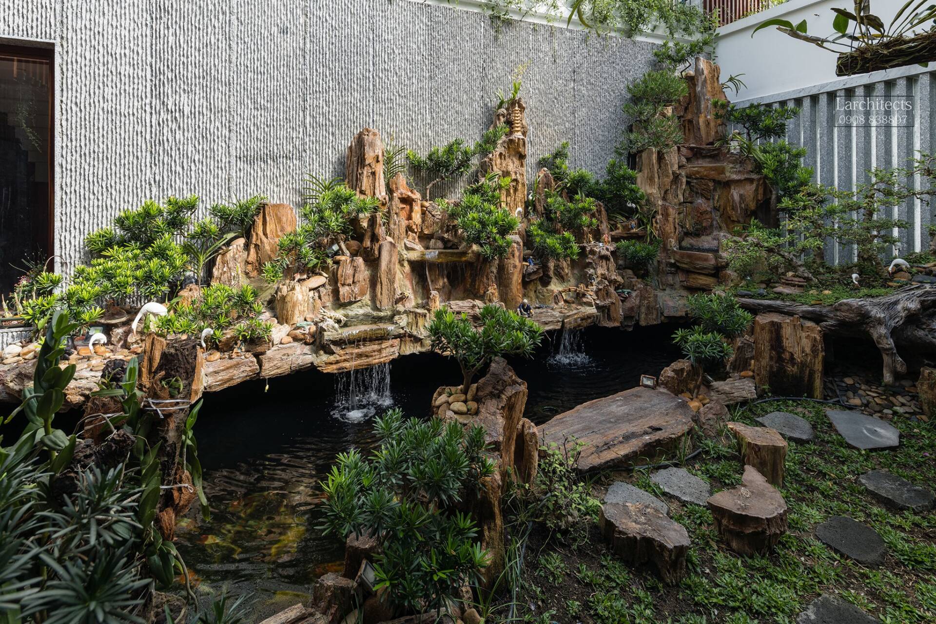 Ao cá uốn lượn cùng hòn non bộ tạo nên khung cảnh thơ mộng, an nhiên