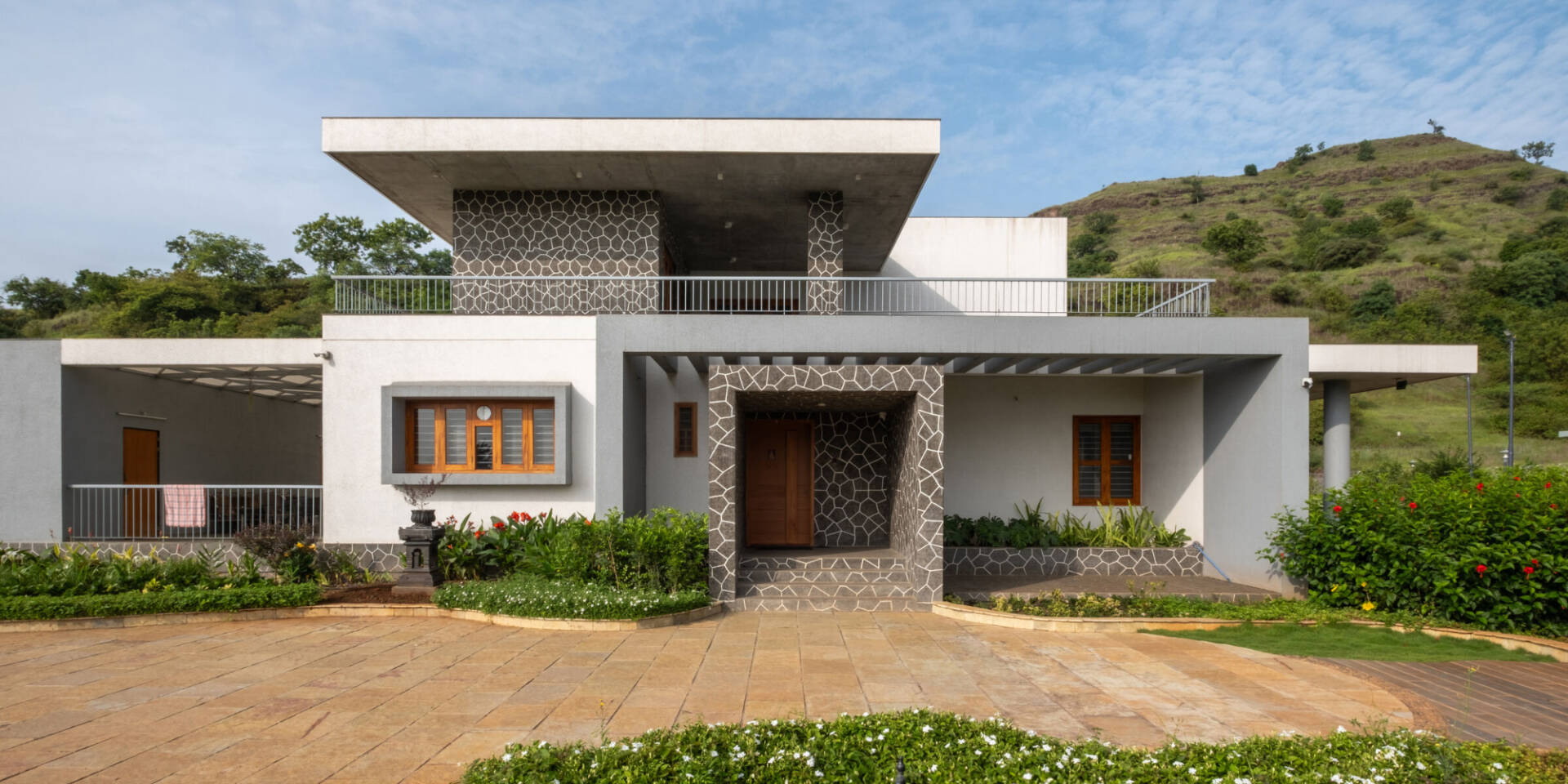 Ở The House of Prajna, các phòng không mở ra phía ngoài mà đều hướng về sân trong, tạo ra kết cấu hình xoắn ốc "ôm" lấy sân vườn. Bên trong, các hành lang dài xuyên qua ngôi nhà, cắt qua các phòng, sân vườn và cả sân thượng.