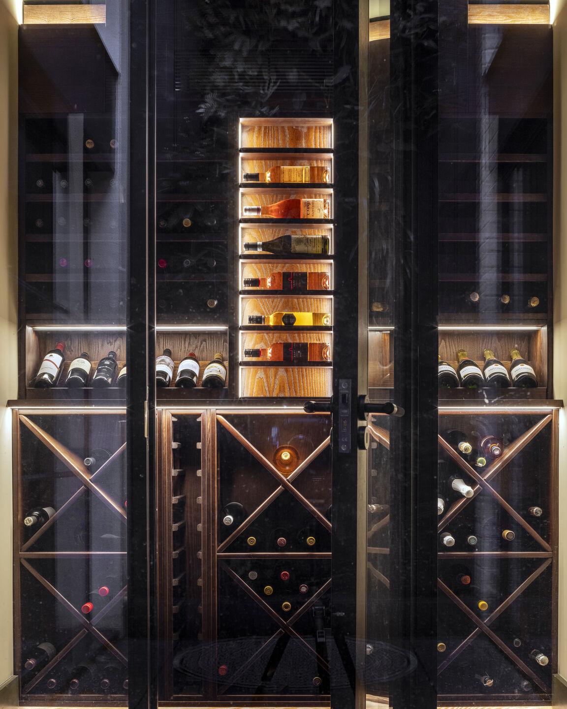 Khu vực quầy bar là nơi gia chủ tiếp đón bạn bè và khách quý. Kệ tủ lưu trữ đồ uống này góp phần tạo điểm nhấn sang trọng cho căn phòng