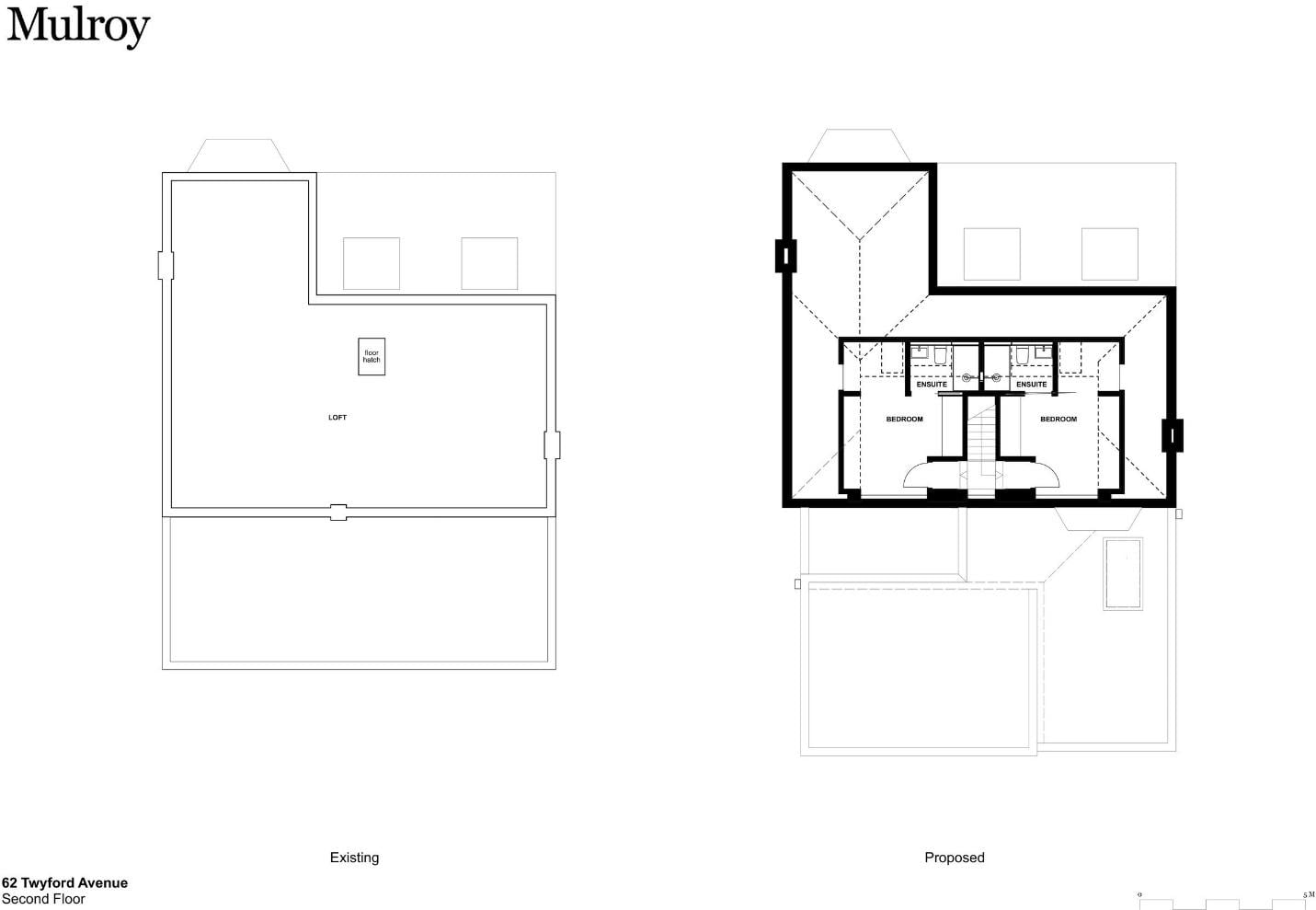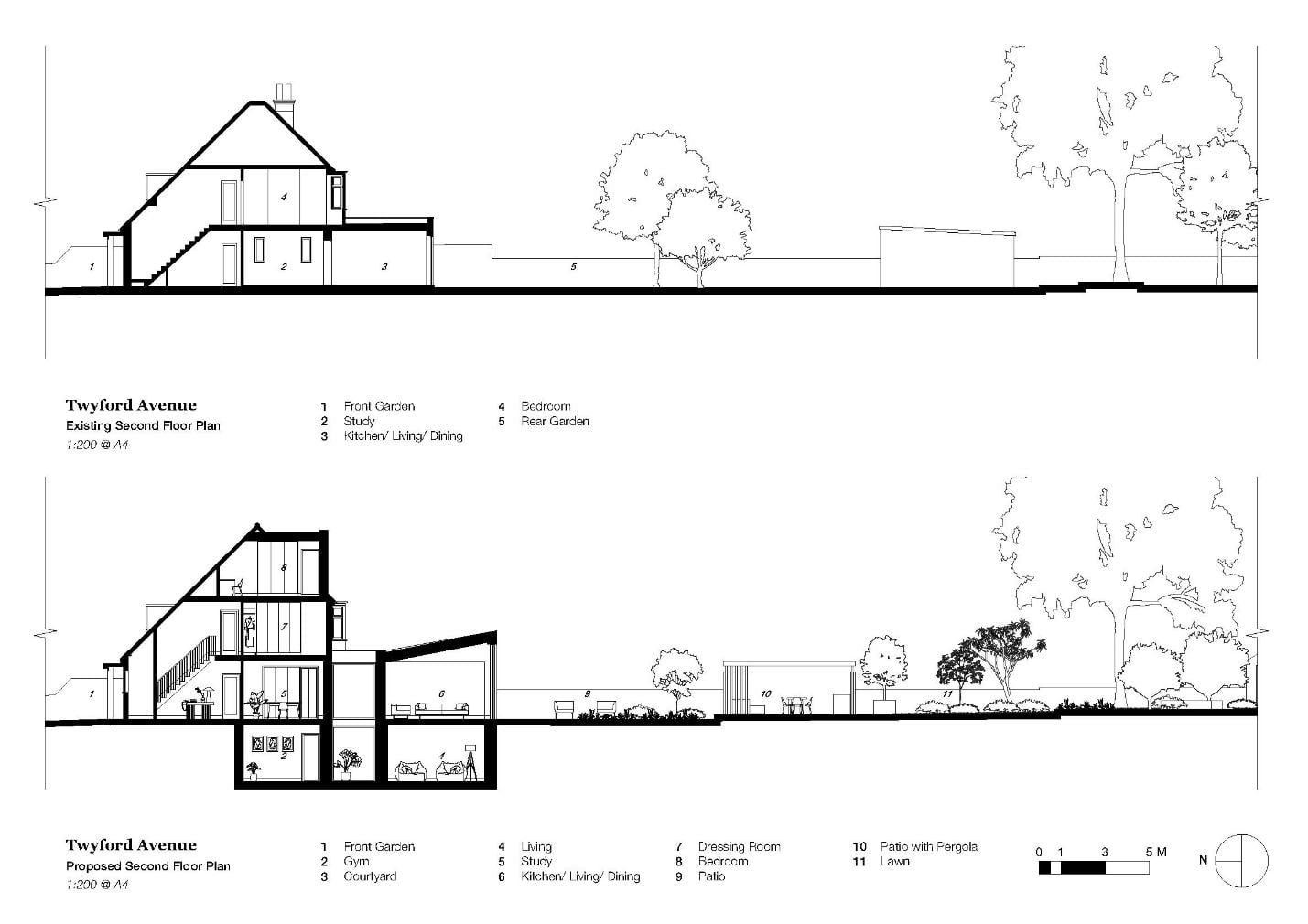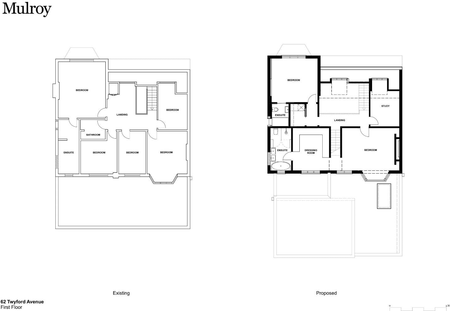 Hiện trạng công trình ban đầu là một ngôi nhà cổ đã trải qua nhiều lần cải tạo, thiếu vắng sự hài hòa về mặt kiến trúc và không gian sống với nguồn sáng tự nhiên khá hạn chế. Mulroy Architects đã khôi phục lại tỷ lệ rộng thoáng vốn có bằng cách mở rộng tầng trệt và tạo ra hai trục nhìn xuyên suốt: một trục từ cửa chính thẳng ra cuối khu vườn, và trục còn lại dẫn ánh sáng từ cầu thang lên trần cao.