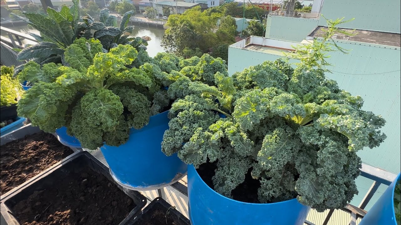 Cách trồng tại nhà: Kale thích hợp với đất tơi xốp, cần ít nhất 6 giờ nắng mỗi ngày. Bạn gieo hạt, tưới ẩm đều, sau 2 tháng có thể thu hoạch từng lá để chế biến thành salad, nước ép hoặc món xào.
