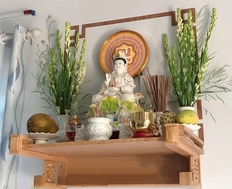 Bàn thờ Quan Âm nên đặt ở vị trí cao, thoáng và thanh tịnh, tránh gần bếp, nhà vệ sinh hay nơi ồn ào.