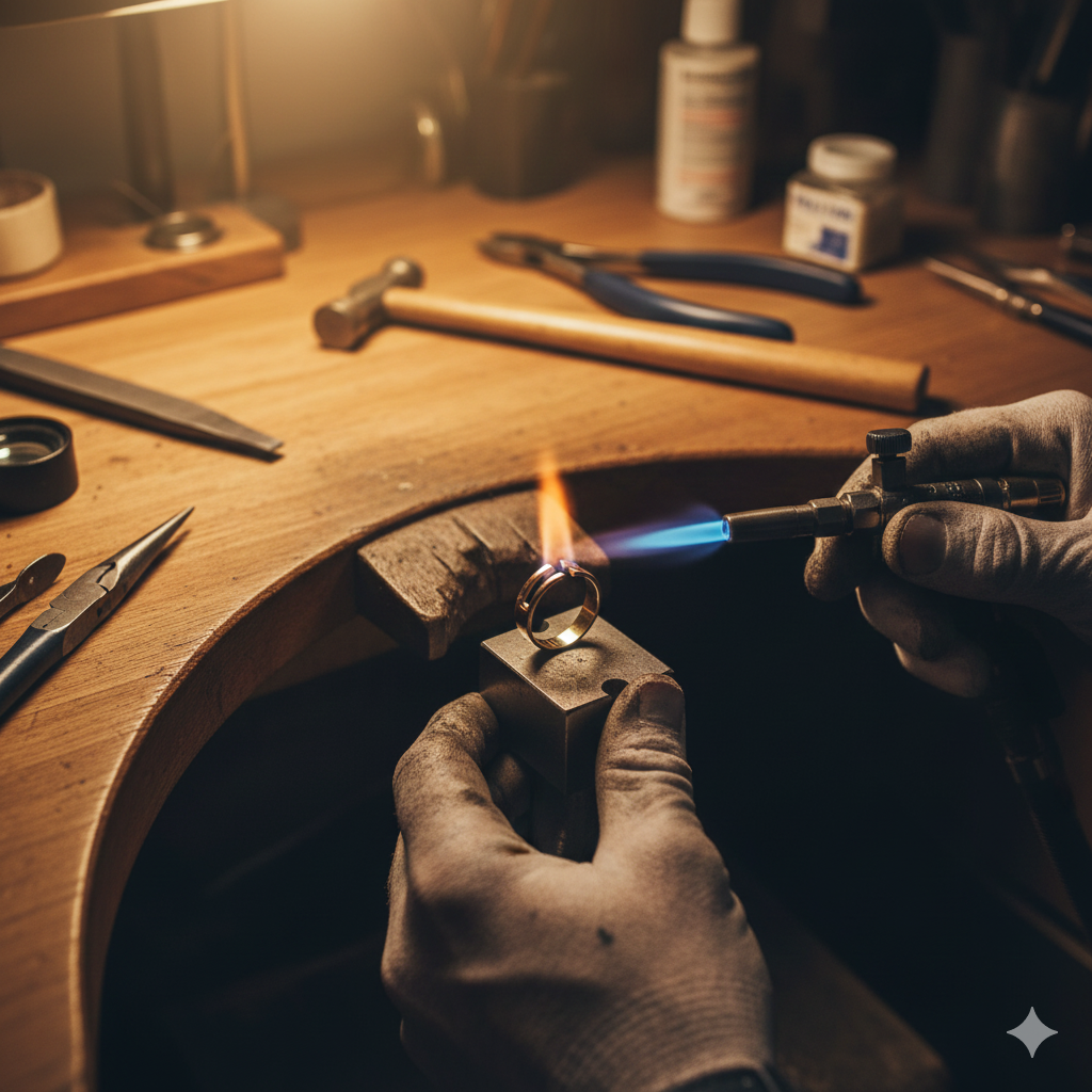 Không nên. Việc cắt và hàn nhẫn đòi hỏi thiết bị chuyên dụng và kỹ thuật cao. Tự làm tại nhà có thể khiến nhẫn bị cháy, biến màu, gãy hoặc hỏng hoàn toàn.