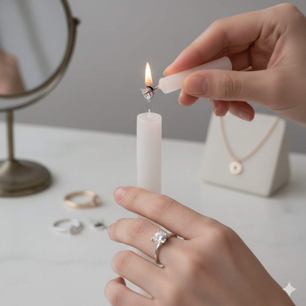 Sáp nến là một cách khắc phục nhẫn bị rộng khá kín đáo, phù hợp với những ai chú trọng tính thẩm mỹ. Khi chọn nến, bạn nên ưu tiên loại nến trong suốt để khi tạo lớp sáp bên trong nhẫn, người ngoài khó nhận ra.