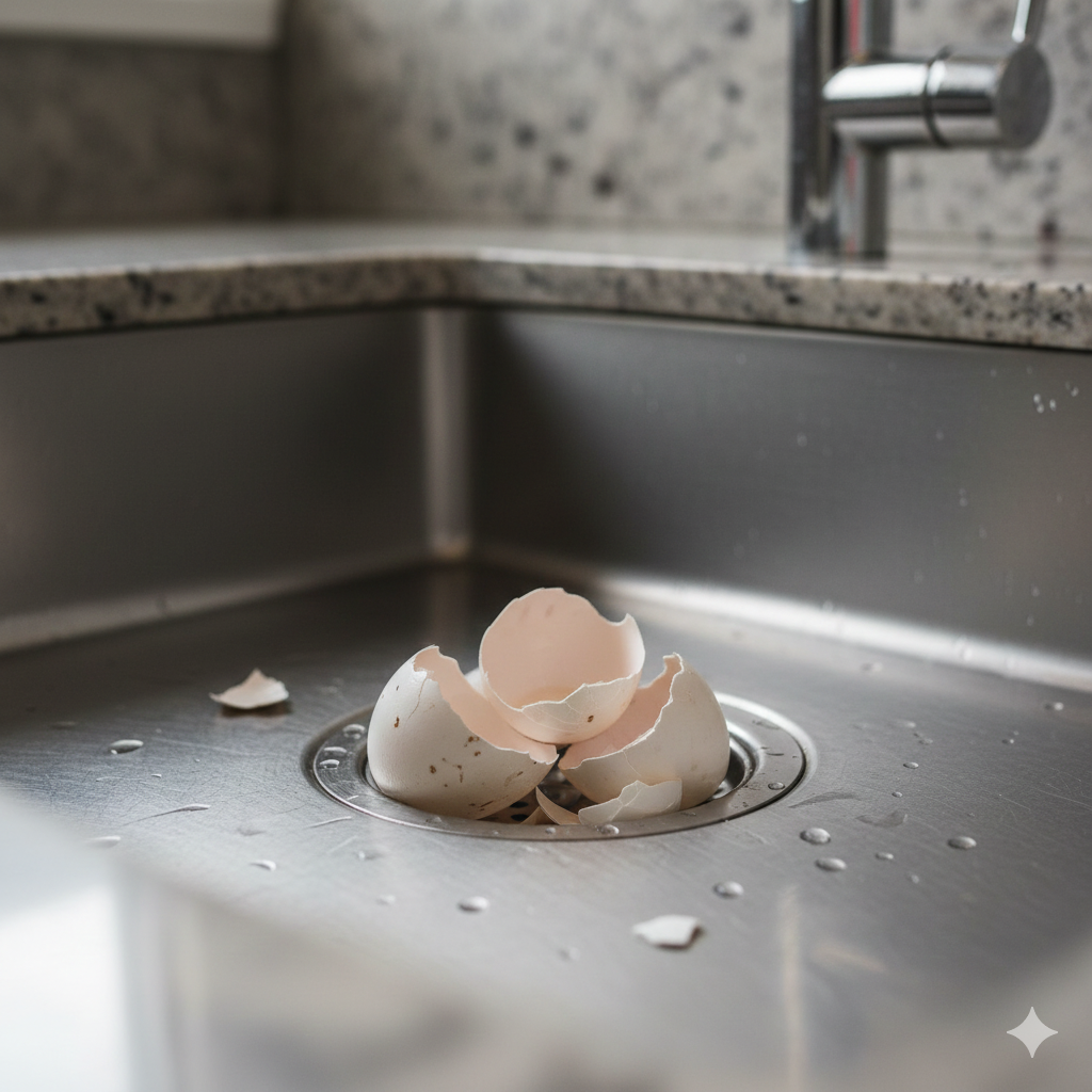 Vỏ trứng dễ tạo hỗn hợp cứng với dầu mỡ và cặn bẩn trong đường ống, gây tắc ngầm khó xử lý nên cần bỏ vào thùng rác thay vì xả xuống bồn rửa.