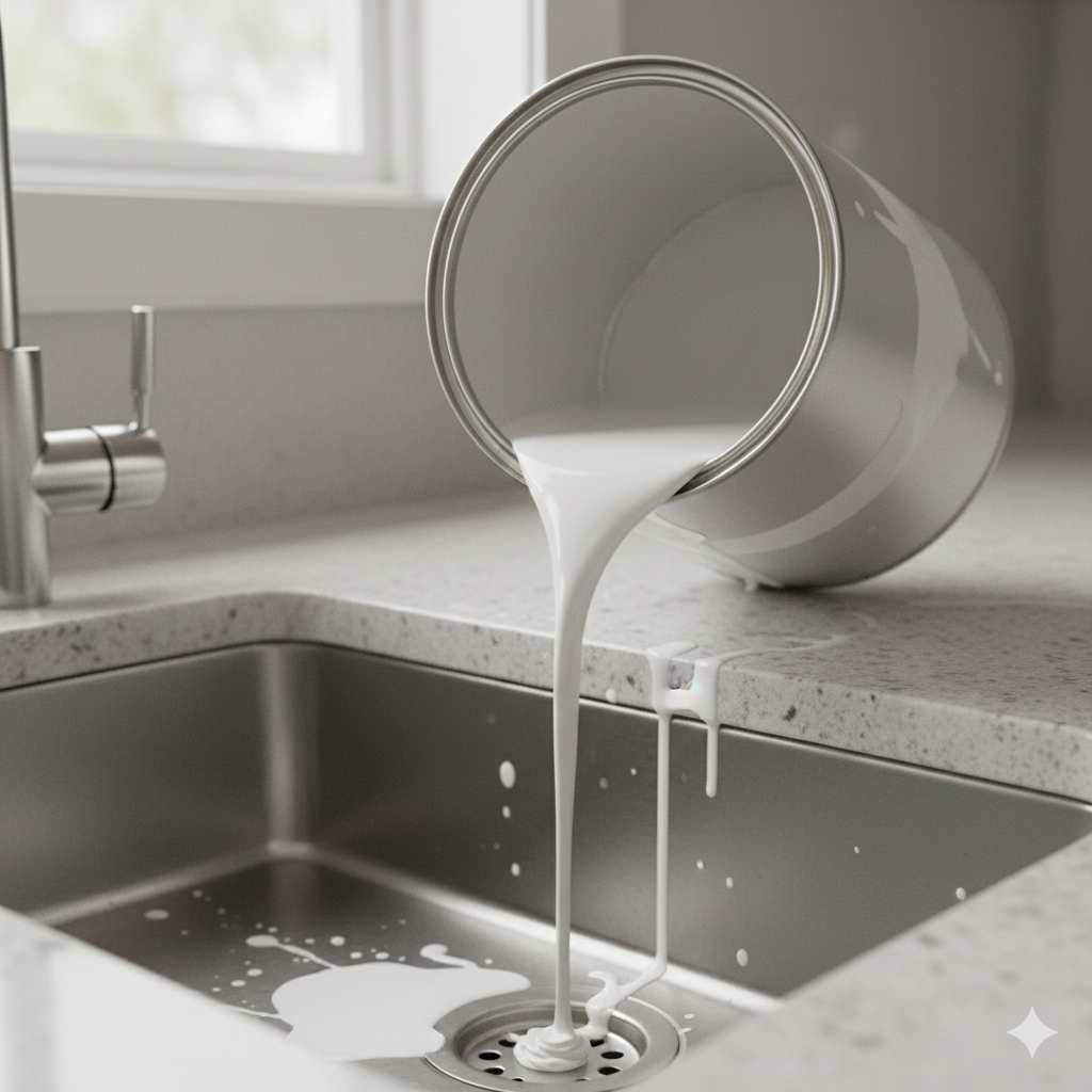 Sơn và hóa chất xây dựng có thể ăn mòn đường ống và gây ô nhiễm nước, vì vậy cần xử lý theo hướng dẫn thay vì đổ xuống cống.