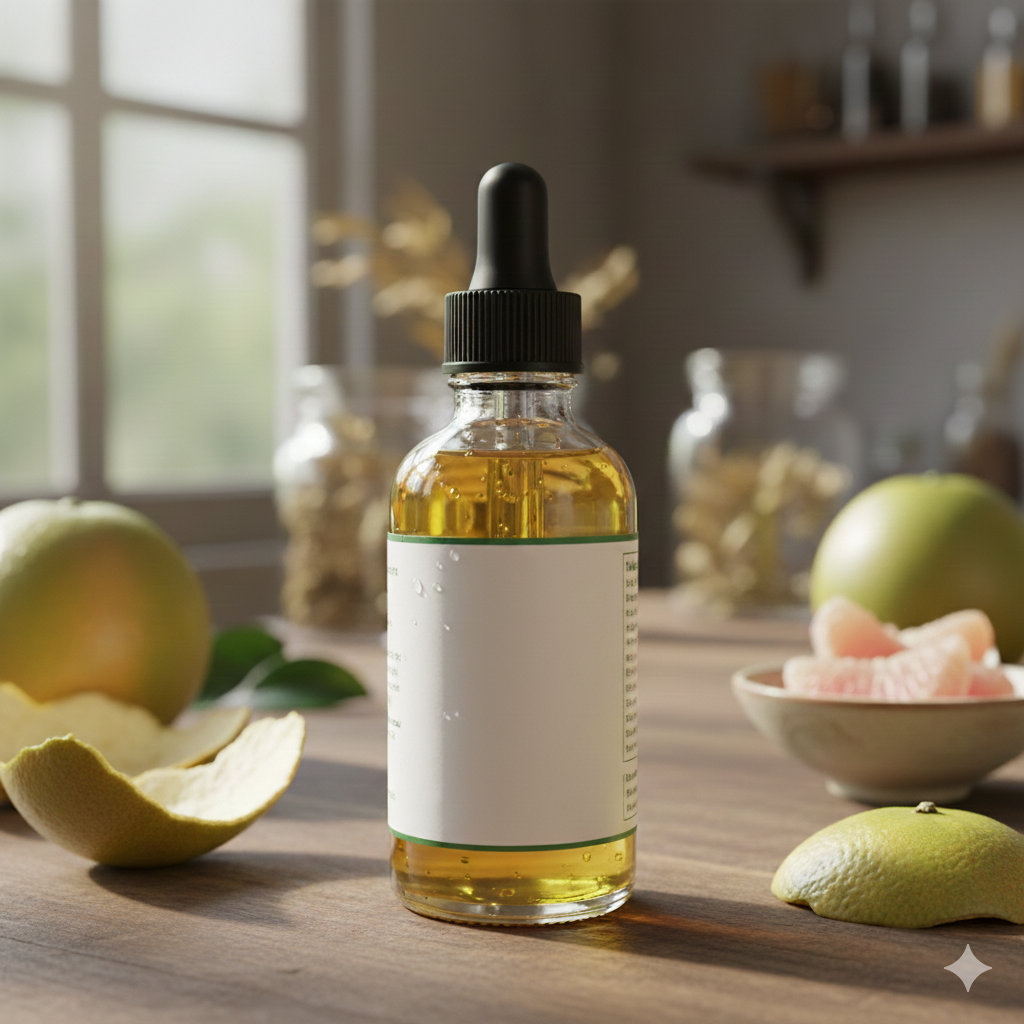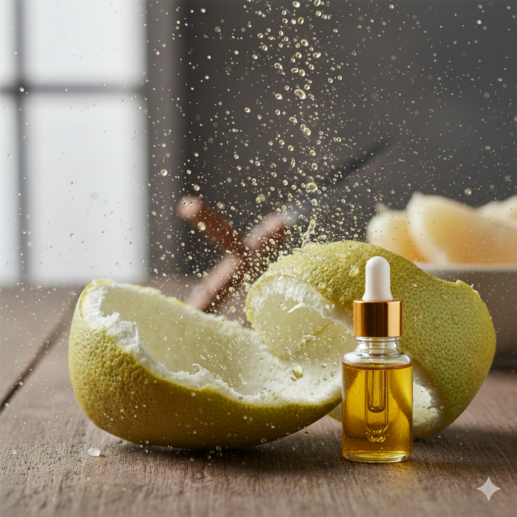 Trong trường hợp không có vỏ bưởi tươi, tinh dầu bưởi nguyên chất cũng là lựa chọn thay thế tiện lợi.