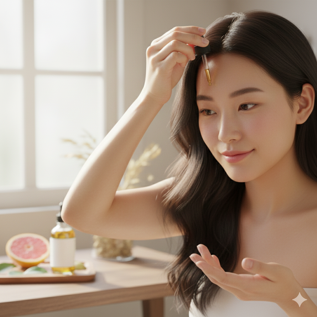 Tinh dầu bưởi có thể thay thế vỏ bưởi tươi bằng cách pha vài giọt với dầu nền để massage da đầu 1-2 lần mỗi tuần, giúp kích thích mọc tóc và nuôi dưỡng nang tóc hiệu quả