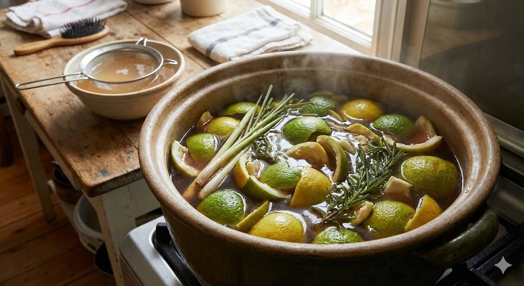 Cách nấu nước vỏ bưởi gội đầu rất đơn giản: đun vỏ bưởi tươi với nước khoảng 15-20 phút để tinh dầu tiết ra, tạo nước gội thơm nhẹ phù hợp với hầu hết các loại tóc