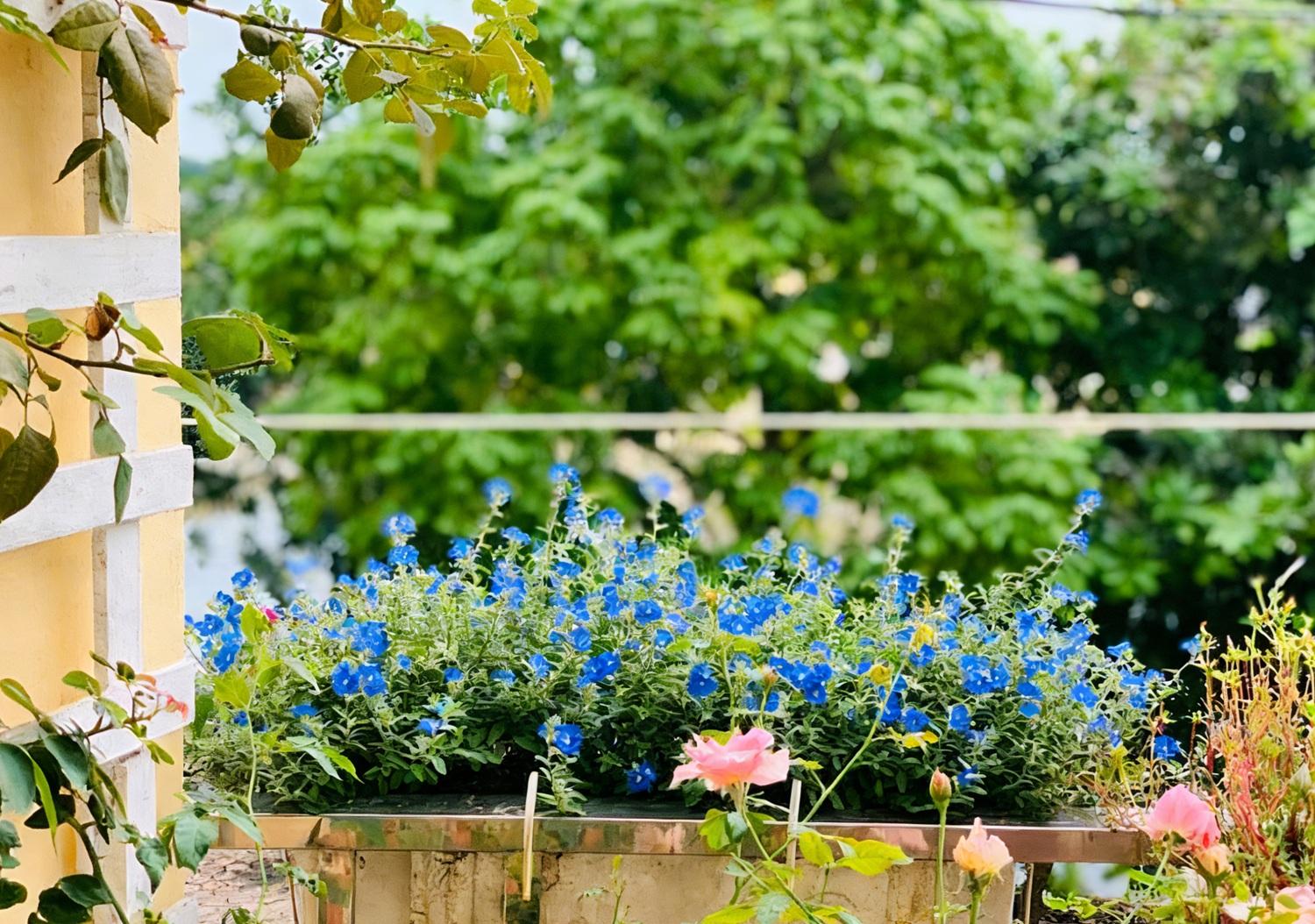 Khác biệt với những gam màu nóng thường thấy dịp Tết, hoa thanh tú mang sắc xanh lam nhạt dịu mắt, tạo cảm giác thư thái và bình yên cho không gian sống. Cây thường được trồng xen kẽ với các loại hoa màu vàng, đỏ để tạo nên sự cân bằng hài hòa về màu sắc.