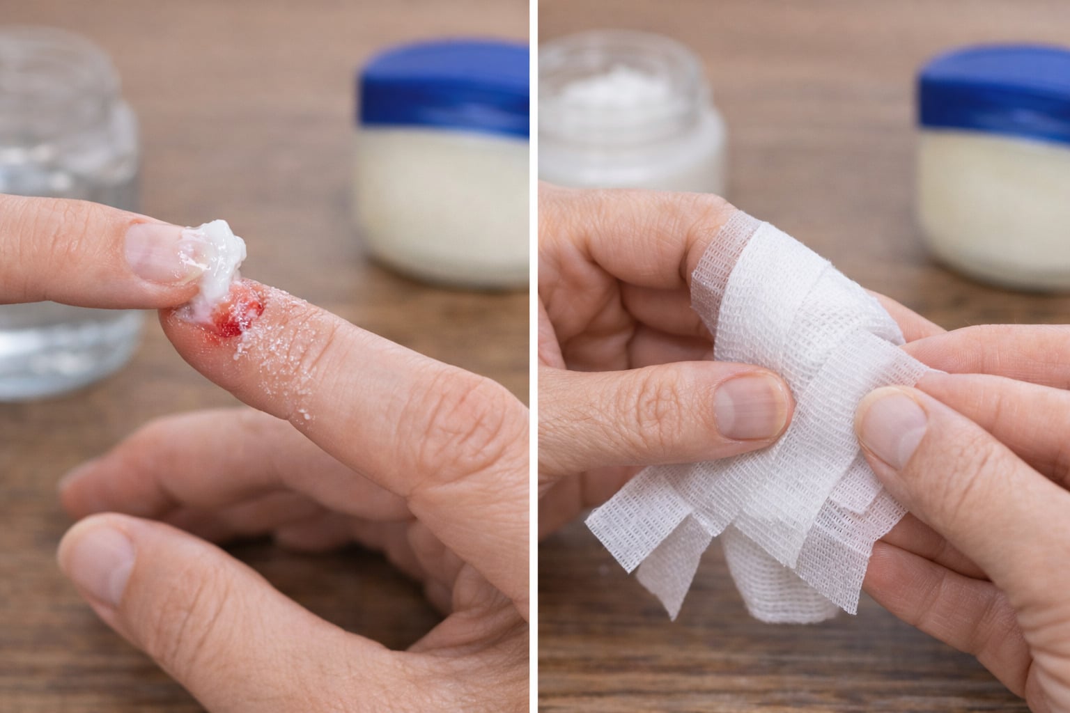 Trước khi thao tác, hãy thoa một lớp mỏng Vaseline (sáp dưỡng ẩm) hoặc kem dưỡng da tay đậm đặc lên các đầu ngón tay và vùng da xung quanh.