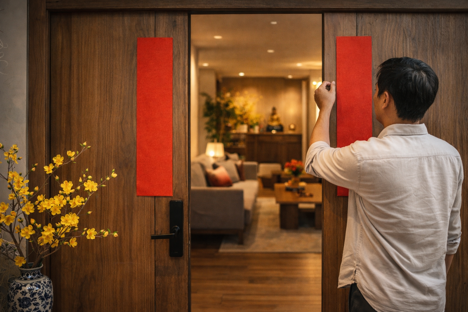 Để treo câu đối Tết đẹp và đúng không khí, cần chọn nội dung phù hợp từng không gian và treo cân đối, trang nhã để giữ sự hài hòa cho ngôi nhà ngày xuân.