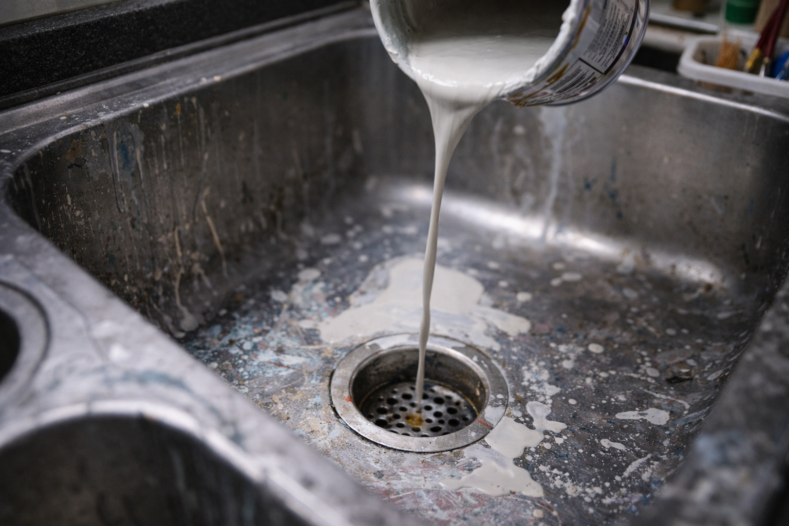 Sơn là chất chứa nhiều hóa chất độc hại. Khi đổ xuống cống, sơn không chỉ làm ô nhiễm nguồn nước mà còn ăn mòn đường ống, gây hư hại lâu dài.