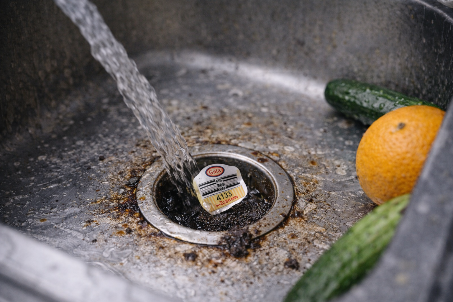 Những miếng tem nhỏ dán trên táo, cam, dưa leo… tuy bé nhưng lại rất dính. Khi trôi xuống cống, chúng dễ bám vào thành ống hoặc mắc kẹt trong bộ lọc của hệ thống xử lý nước.