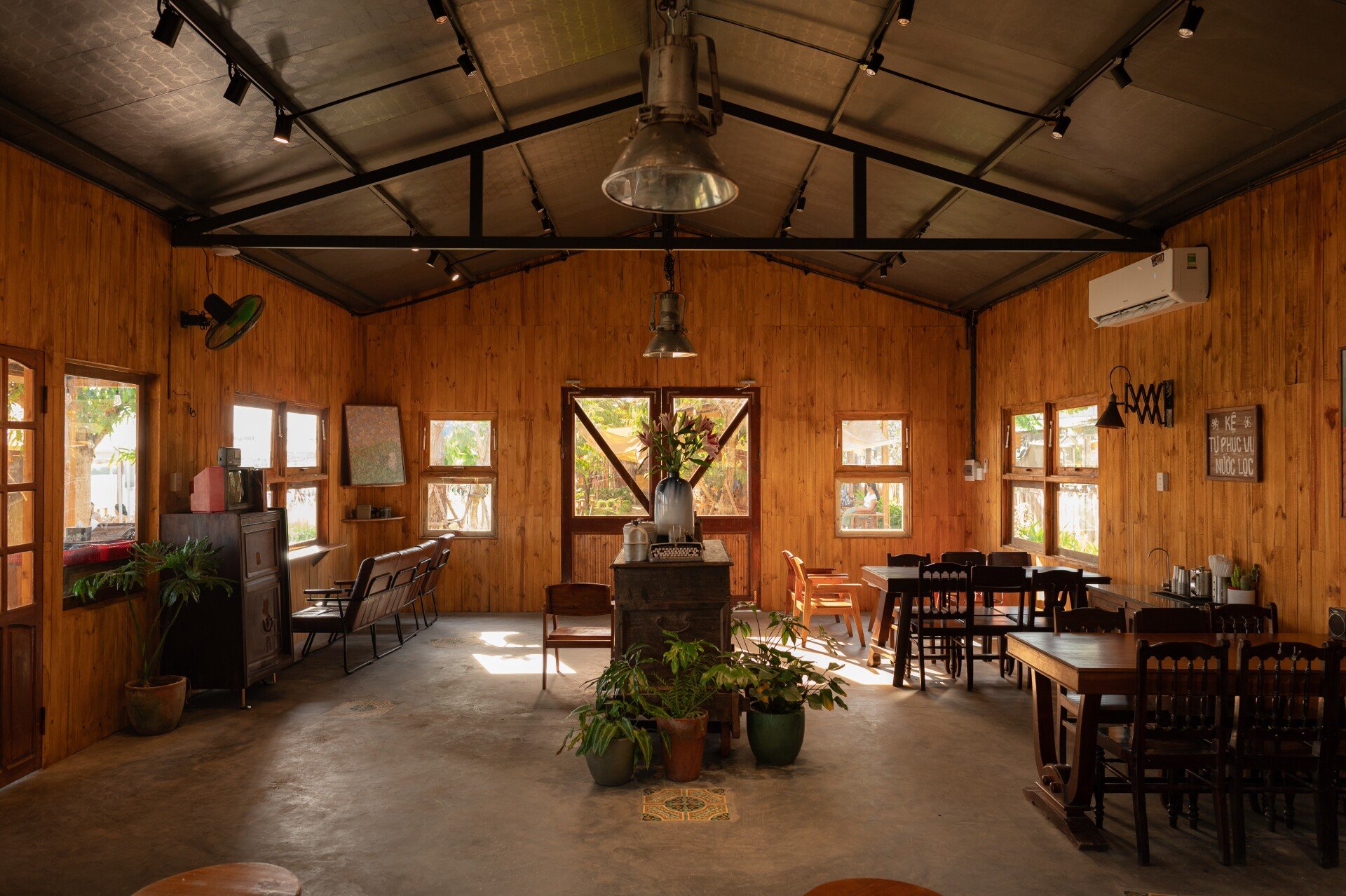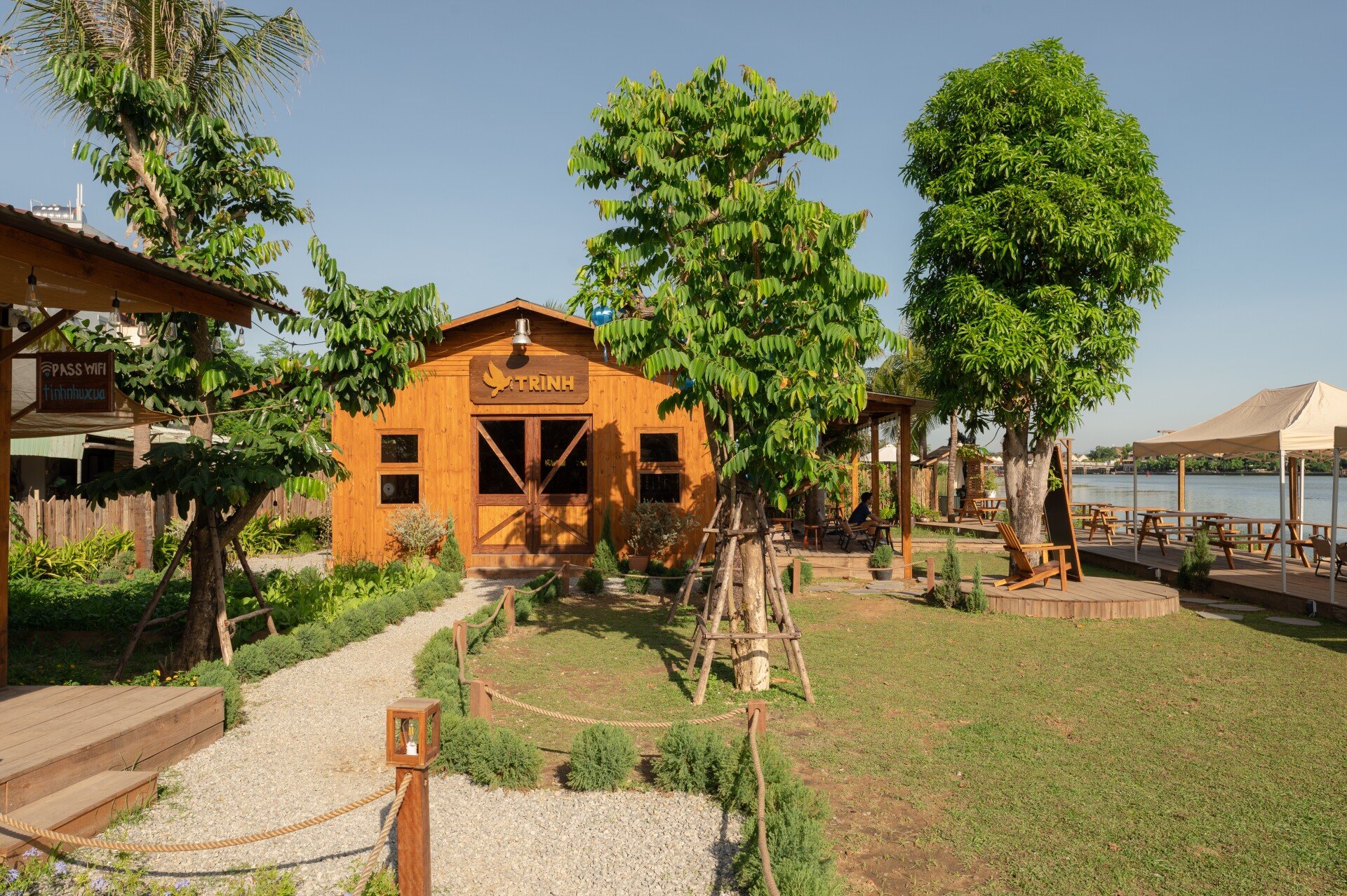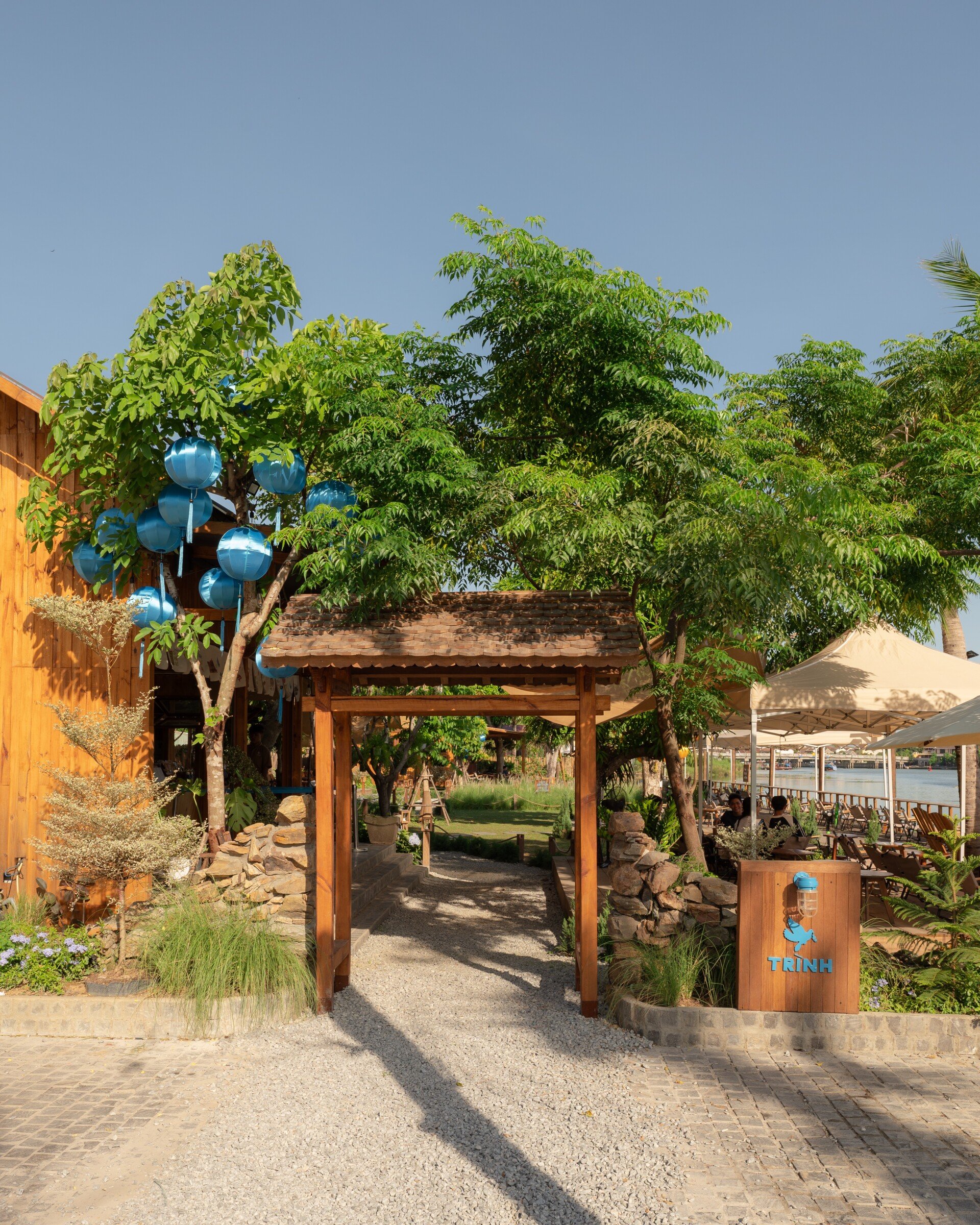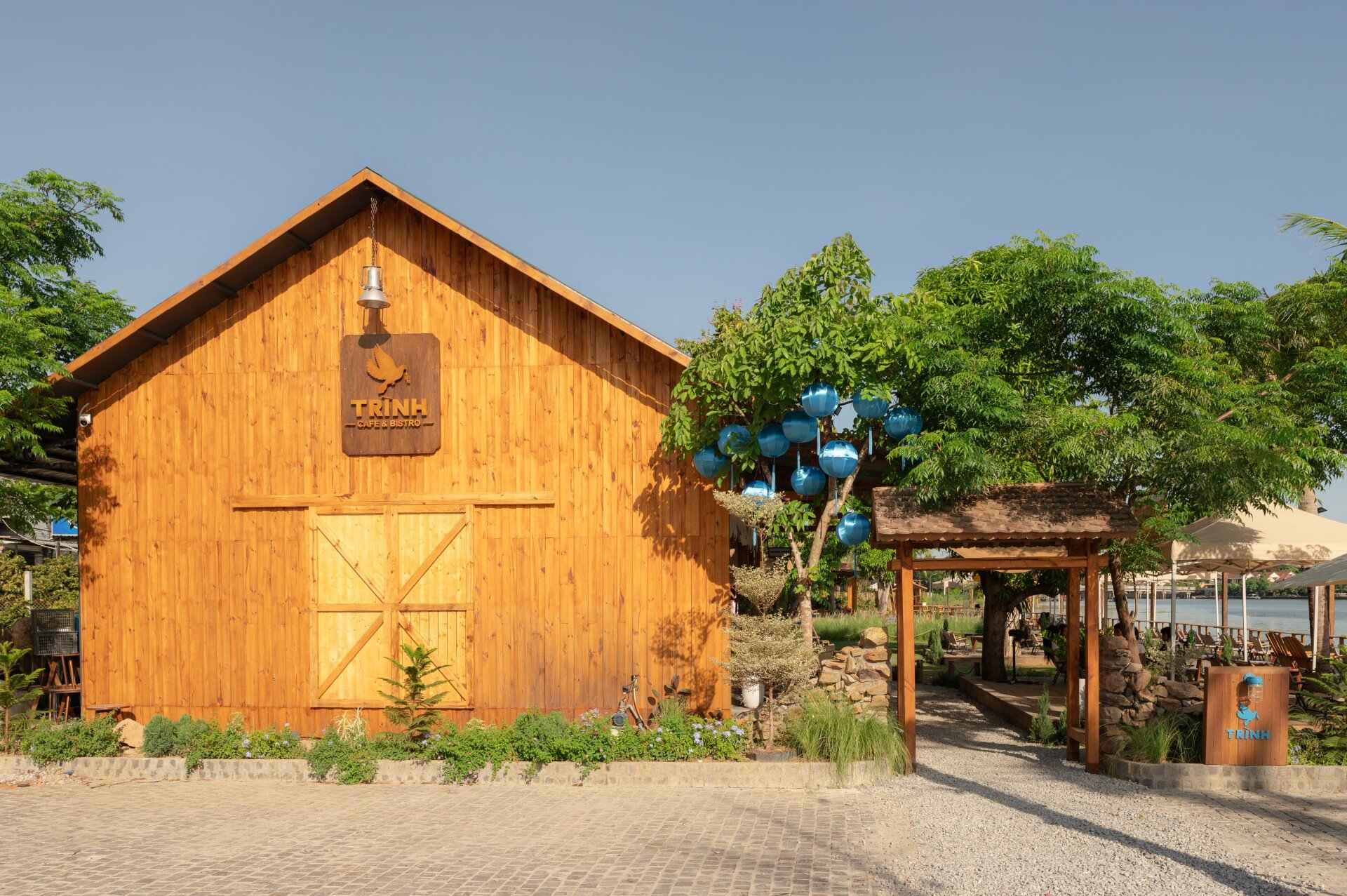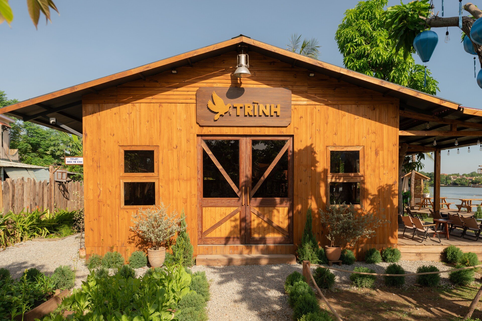 Lấy cảm hứng từ phong cách sân vườn mộc mạc, Trình Bistro không phô trương, không cầu kỳ mà chú trọng vào cảm xúc chân thực. Những mảng tường gỗ xưa, mái ngói màu gạch nung cùng chất liệu gỗ tự nhiên tạo nên sắc thái gần gũi, ấm cúng nhưng vẫn thanh thoát. Bước chân vào quán, du khách như lạc vào một khu vườn tươi tốt, nơi tiếng chim hót xen lẫn tiếng nước sông khẽ vỗ bờ, mang lại cảm giác thư thái hiếm có giữa nhịp sống bận rộn.