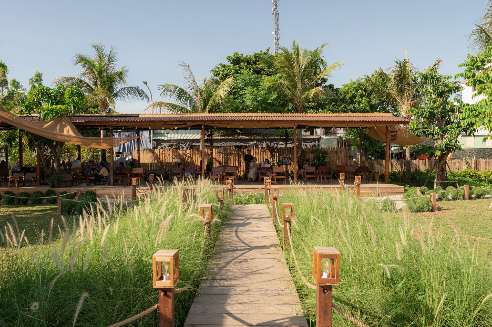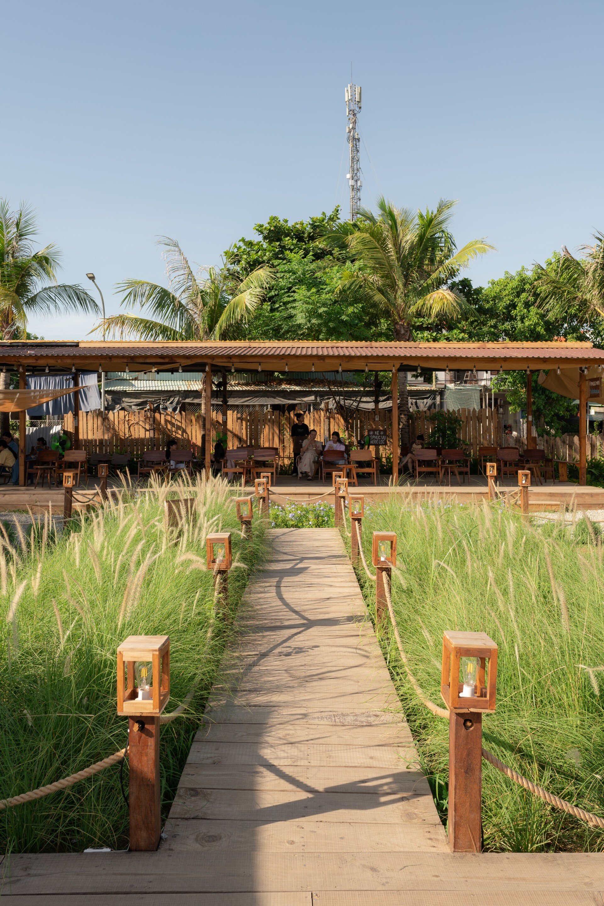 Không gian được S2 Studio khéo léo bố trí giữa trong – ngoài, ánh sáng tự nhiên len lỏi qua những tán lá, thảm cỏ lau trắng xanh tạo nên bức tranh lung linh thay đổi theo từng khoảnh khắc trong ngày. Bàn ghế gỗ thô mộc, những chiếc đèn tre đan nhẹ nhàng thắp sáng không gian khi chiều buông, khiến Trình Bistro trở thành điểm hẹn lý tưởng cho những ai muốn tận hưởng vẻ đẹp Hội An theo cách chậm rãi và tinh tế nhất.