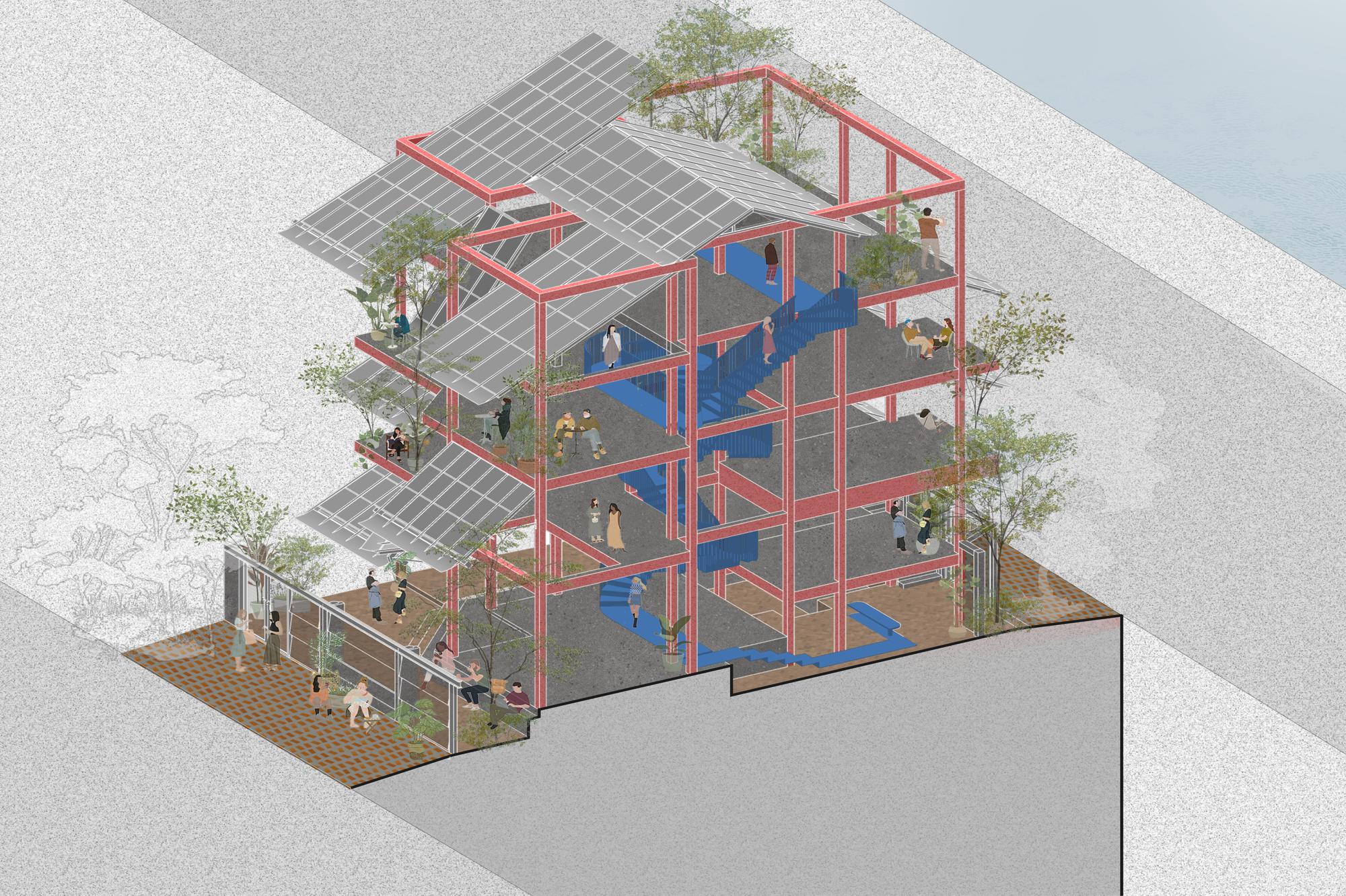 Dom-Ino Hub có thiết kế mở, không gian linh hoạt với mục tiêu tái kết nối con người với thiên nhiên