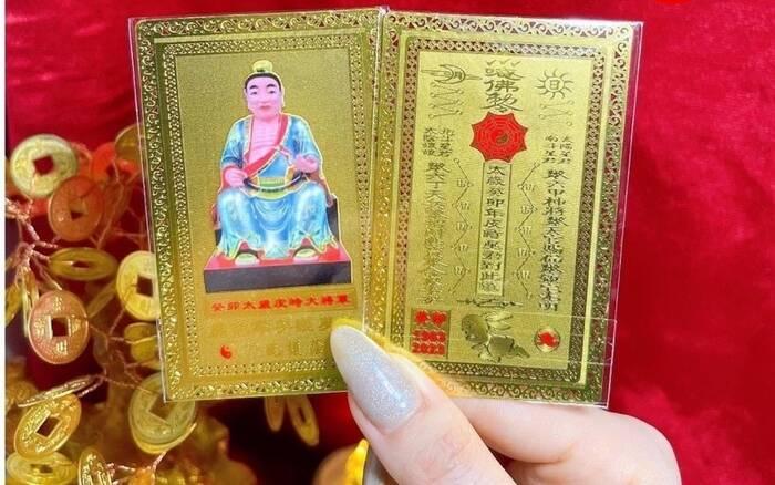 Mảnh giấy đỏ ghi sẵn tên Thái Tuế – để phía sau lư hương, tượng phật.