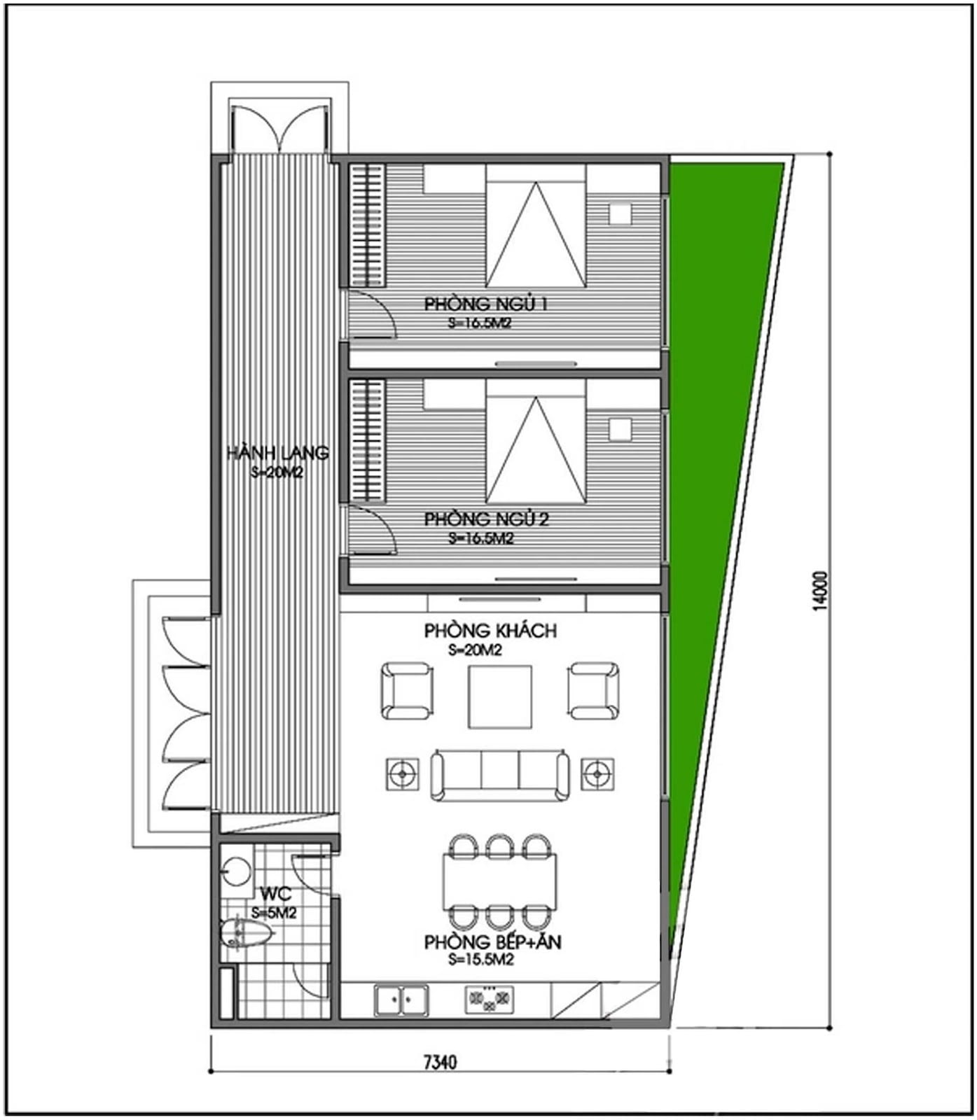Ví dụ về nhà xây trên đất hình thang