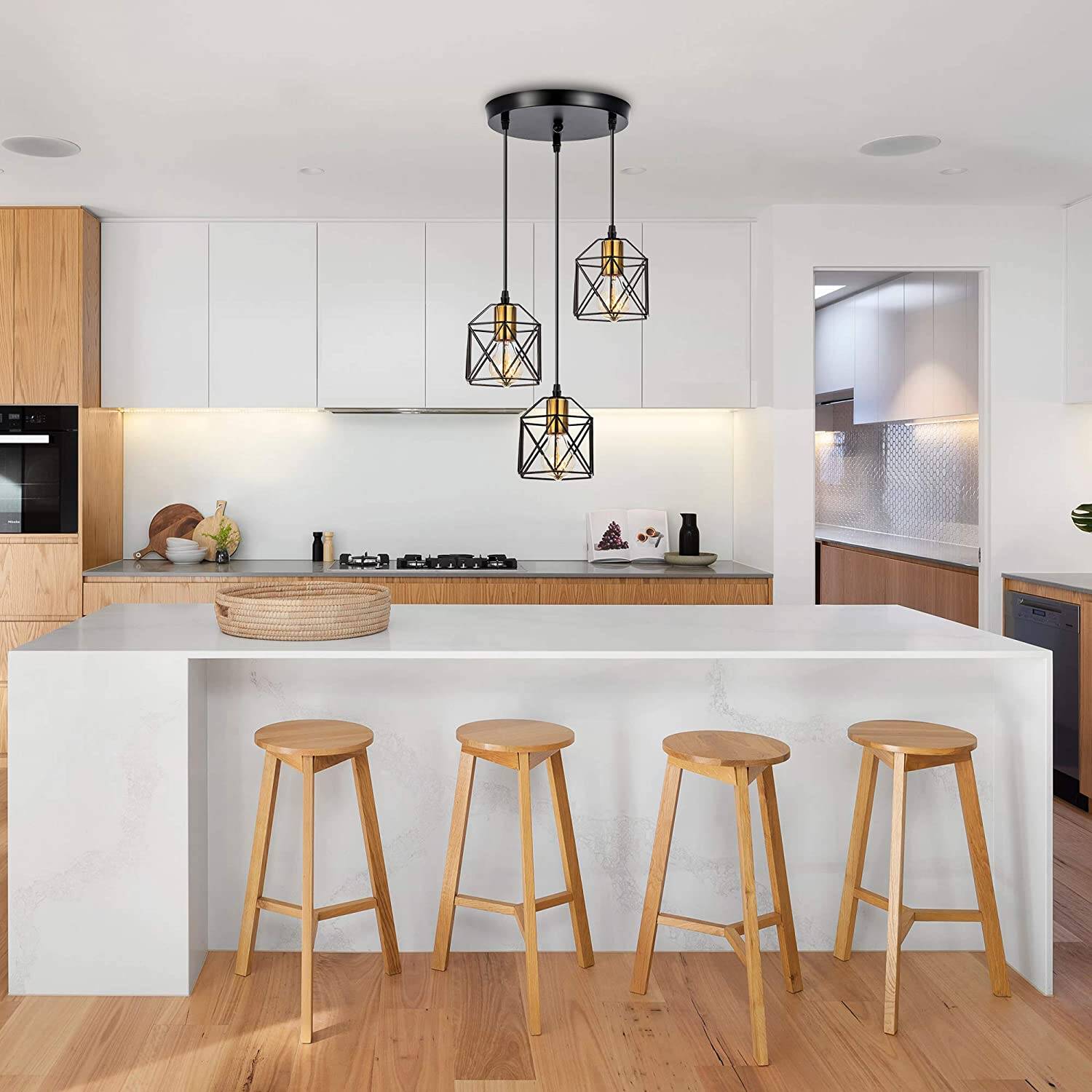 Gia chủ có thể lựa chọn đèn thả trần trang trí hoặc các loại đèn chiếu sáng phổ thông để tạo điểm nhấn cho khu vực bàn ăn và đảo bếp. Tuy nhiên, điều quan trọng trong thiết kế phòng bếp là tăng cường ánh sáng tại các vị trí làm việc chính như bồn rửa và khu vực nấu ăn. Đèn led âm tủ hoặc đèn gắn dưới kệ bếp sẽ giúp hạn chế bóng đổ, hỗ trợ quan sát tốt hơn khi sơ chế thực phẩm.