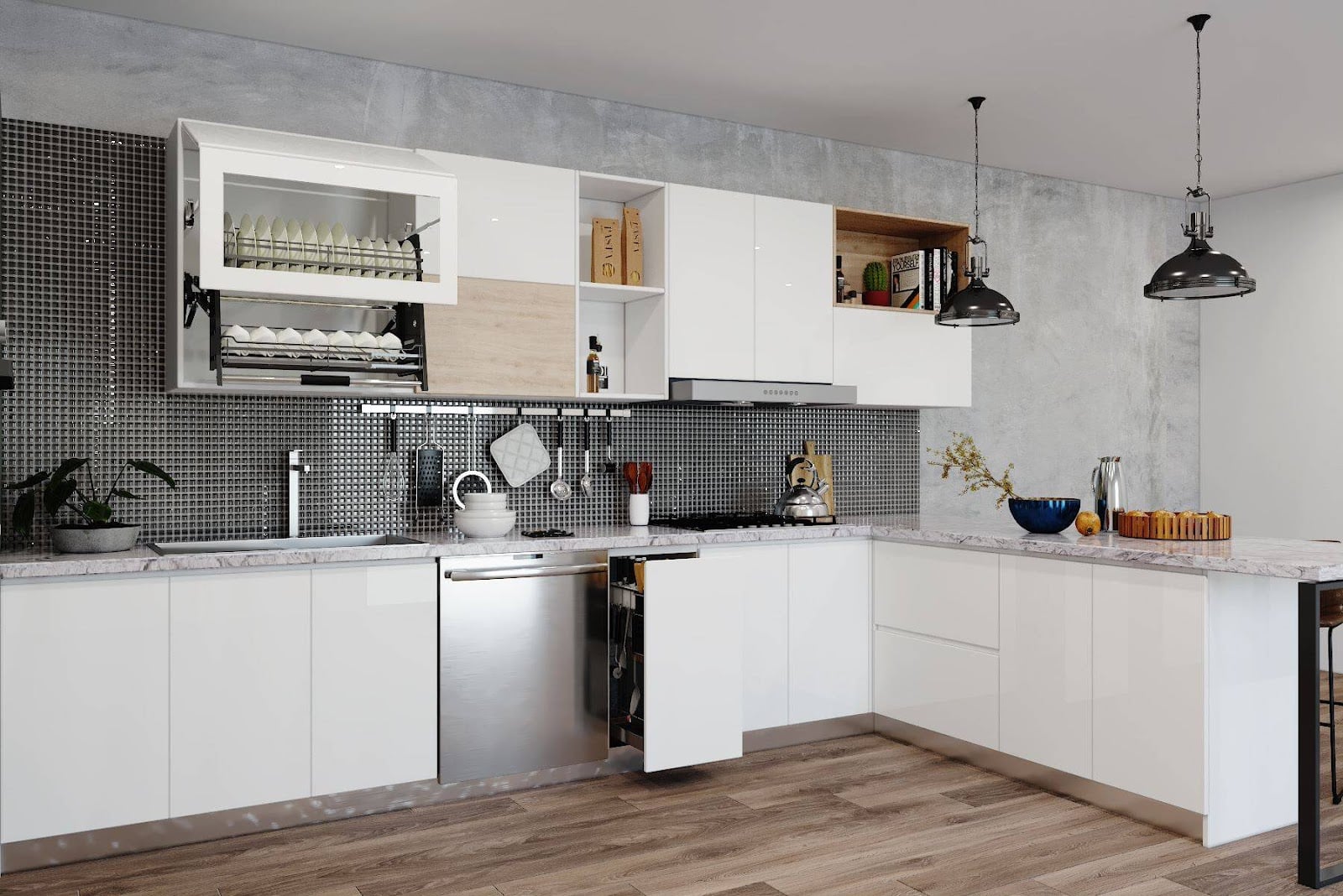 Tùy theo diện tích và mặt bằng, thiết kế phòng bếp thường được tổ chức theo các dạng phổ biến như chữ U, chữ L hoặc chữ G.