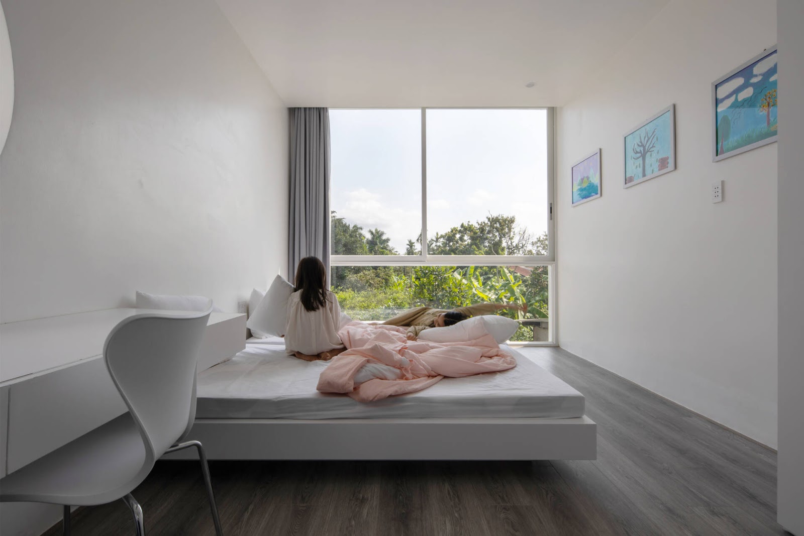 Thiết kế phòng ngủ nhà ống có cửa sổ giúp cải thiện sự thông thoáng và thoáng đãng cho không gian sống (Ảnh: NHT House)