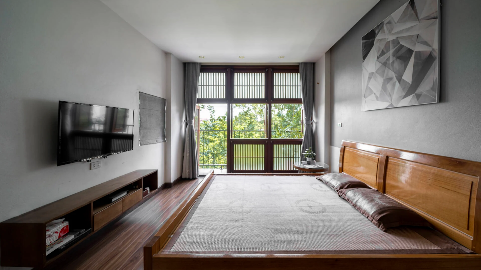 Trong thiết kế phòng ngủ nhà ống, đầu giường nên để thông thoáng để tạo cảm giác dễ chịu (Ảnh: Nhà Thủ Đức)
