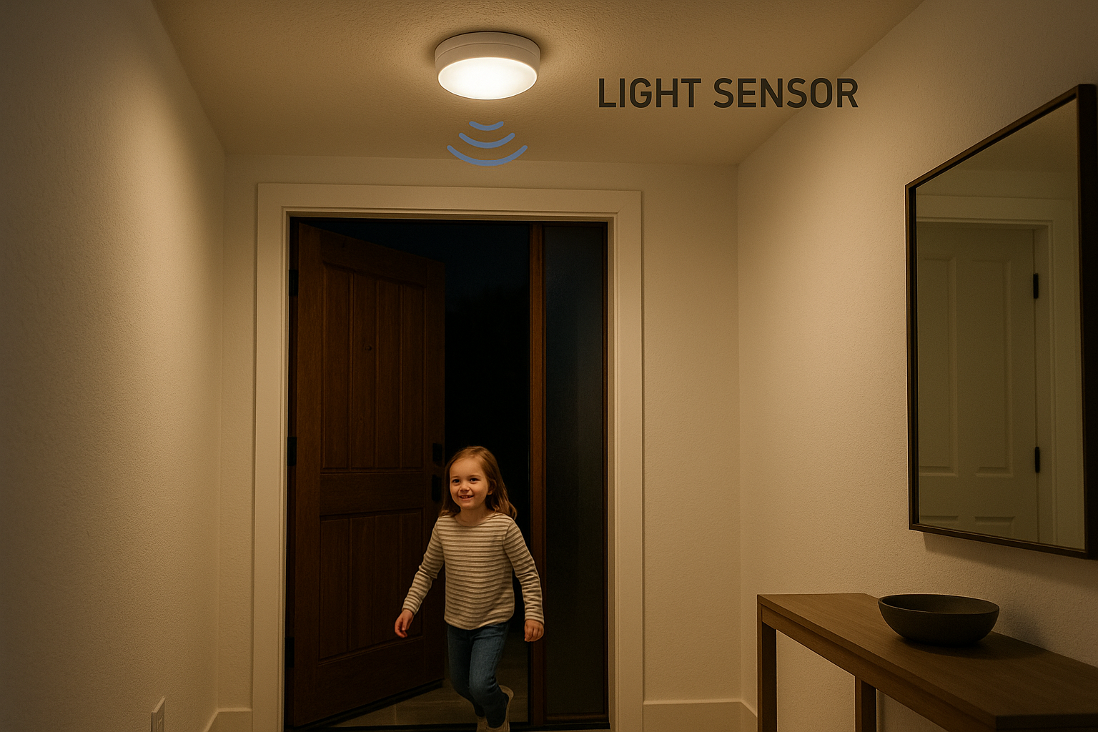 Đèn sử dụng một cảm biến quang điện (quang trở hoặc cảm biến ánh sáng kỹ thuật số) để đo mức ánh sáng trong môi trường. Cơ chế này giúp thiết bị hoạt động hoàn toàn tự động, phù hợp cho các khu vực ngoài trời như sân vườn, ban công, hoặc cổng nhà.