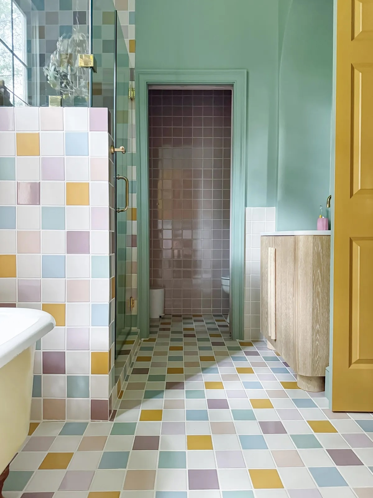 Chọn loại gạch có màu sắc ăn nhập với thiết kế không gian: Màu sắc gạch cần phải hòa hợp với không gian nhà tắm, nhà vệ sinh. Chẳng hạn với phòng tắm hẹp, nhiều ngóc ngách, bạn nên chọn màu gạch tươi sáng để tạo cảm giác rộng rãi hơn.