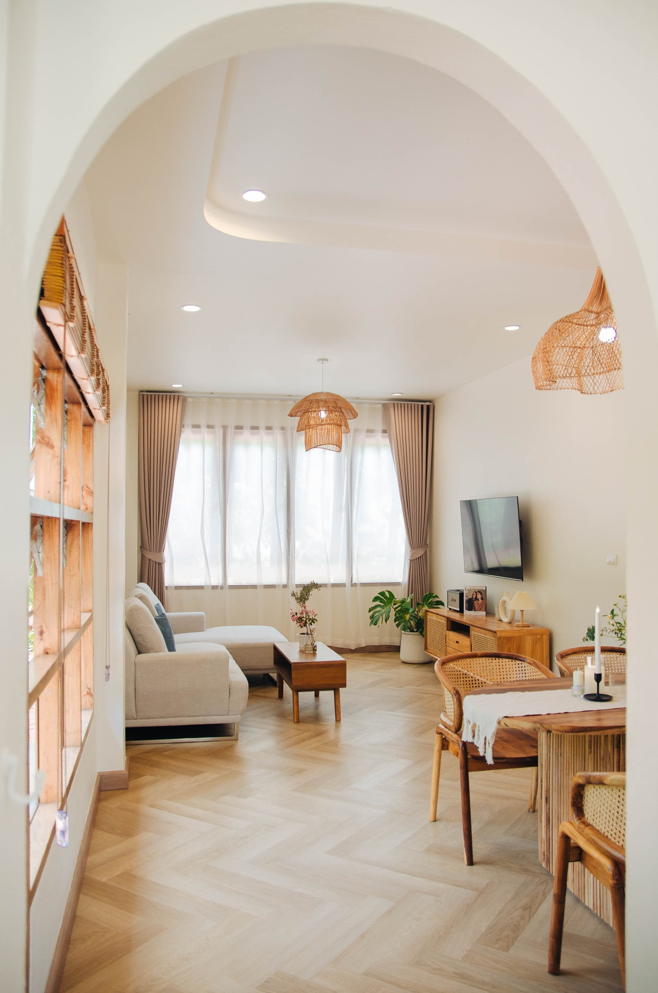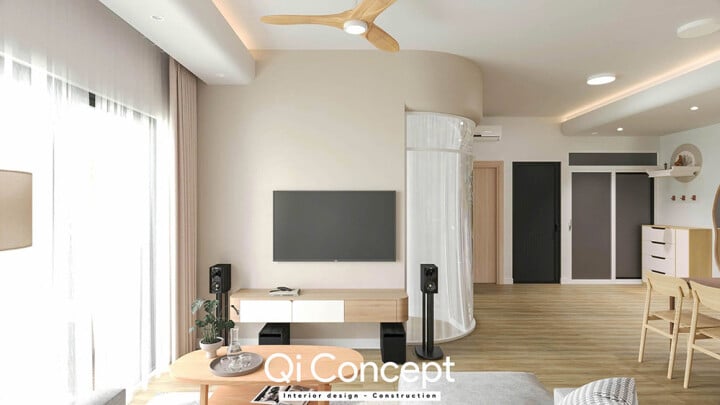 Sử dụng rèm voan mỏng, sáng màu, chúng không cản sáng mà chỉ lọc sáng, biến ánh nắng gắt trở nên mềm mại và khuếch tán vào những ngóc ngách nhỏ trong phòng.