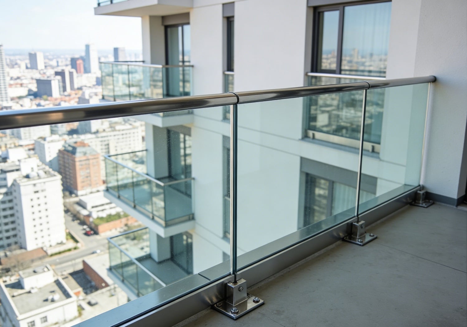 • Kính lan can: Phải là kính cường lực/kính dán an toàn, các chấu kẹp kính phải chặt, không để tấm kính xộc xệch.