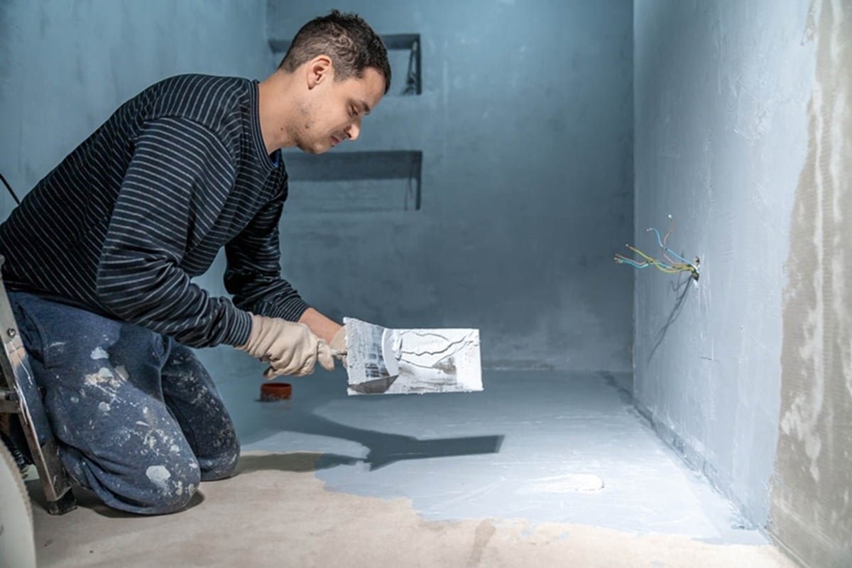 Sau khi chống thấm khô, phủ lên một lớp vữa bảo vệ trước khi lát gạch.