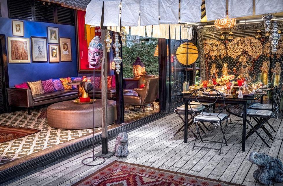 Tại căn hộ ở Mumbai, gia chủ đã mang vẻ đẹp truyền thống Ả Rập từ phòng khách ra đến ban công. Những hoa văn cầu kỳ trên thảm trải sàn, khăn trải bàn hay các chi tiết điêu khắc được lặp lại một cách khéo léo bên ngoài. Sự chuyển tiếp mượt mà này xóa bỏ cảm giác đứt gãy không gian, khiến ngôi nhà trở thành một khối thống nhất đầy nghệ thuật và tinh tế.