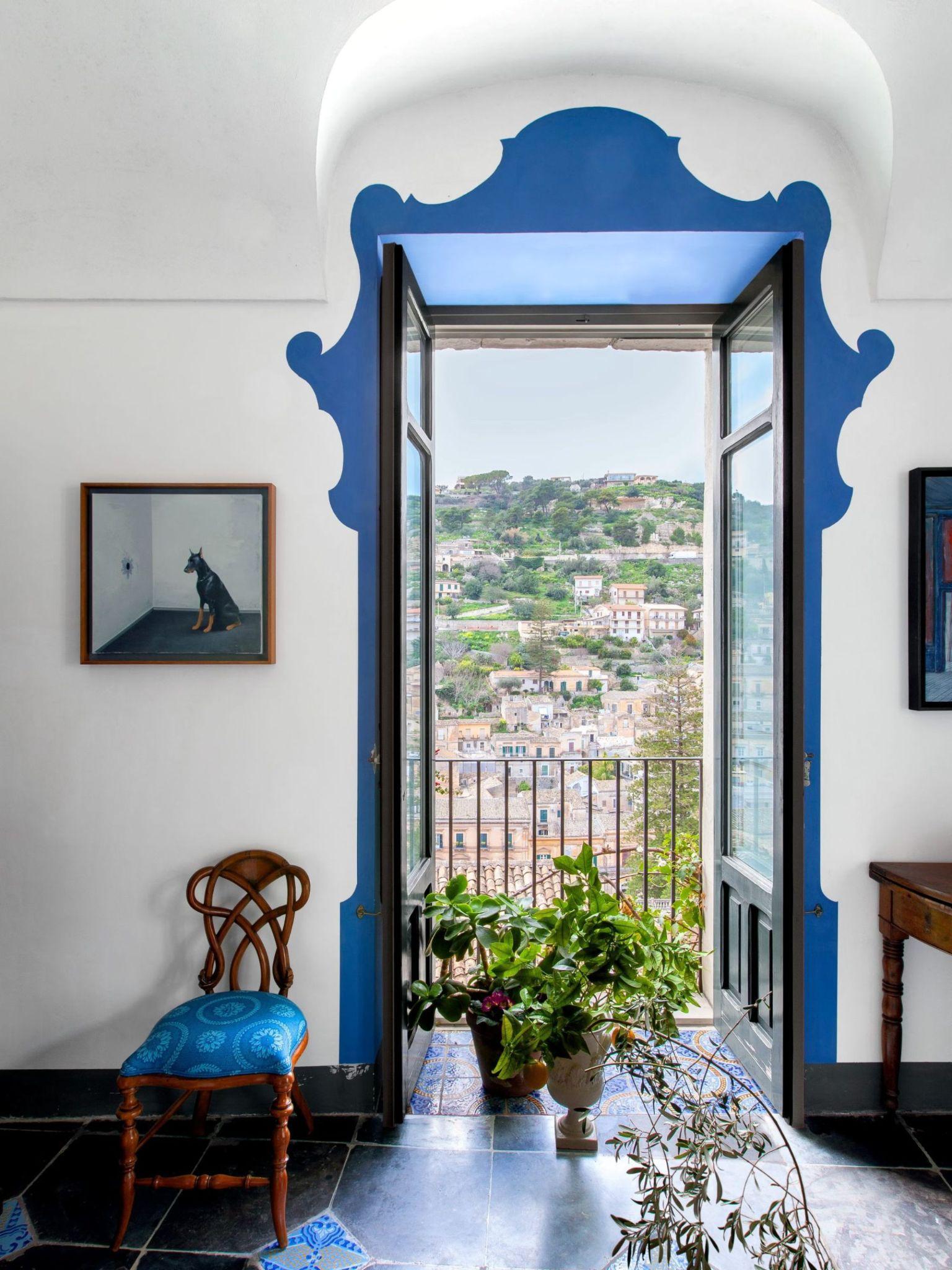 Một ví dụ điển hình tại căn hộ palazzo ở vùng Sicilia, khung cửa ban công được sơn màu xanh trầm và tạo tác như một chiếc khung tranh nghệ thuật. Nhờ đó, những triền đồi nhấp nhô, mái ngói cổ kính và bầu trời xanh thẳm phía xa hiện lên sống động như một tác phẩm hội họa thay đổi theo từng khoảnh khắc trong ngày. Lúc này, ban công đóng vai trò như một lăng kính, đưa thiên nhiên bước vào không gian sống một cách nhẹ nhàng và tinh tế.