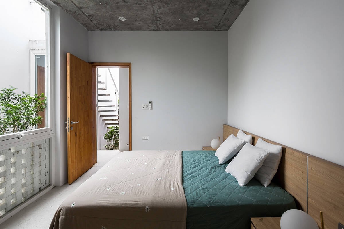 Cửa phòng ngủ không nên đối diện trực tiếp cửa chính vì khí tốt dễ bị cuốn thẳng ra ngoài. Trường hợp bất khả kháng, có thể dùng bình phong, tủ ngăn hoặc rèm pha lê để làm chậm dòng khí. Ngoài ra, cửa phòng ngủ cũng nên tránh đối diện nhà vệ sinh vì uế khí dễ xâm nhập, ảnh hưởng sức khỏe và vận thế.