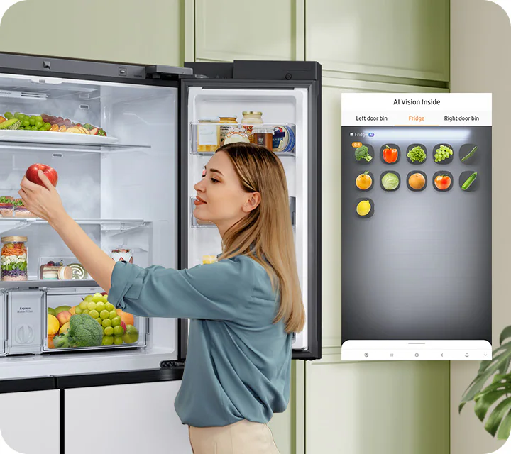 Điểm gây ấn tượng đầu tiên chính là màn hình cảm ứng 32 inch được tích hợp ngay trên cánh tủ, chỉ cần vài thao tác chạm, bạn có thể kiểm tra những gì còn trong tủ mà không cần mở cửa nhờ camera AI Vision Inside. Bếp giờ đây không chỉ là nơi nấu nướng, mà còn trở thành không gian tương tác và giải trí của cả gia đình.Người dùng có thể vừa nấu ăn vừa mở công thức nấu trên YouTube, nghe nhạc qua Spotify, hay thậm chí gọi video call cho các thành viên khác trong gia đình. Chức năng quản lý thực phẩm giúp bạn biết chính xác còn những gì trong tủ, hạn sử dụng của từng món, từ đó gợi ý thực đơn hằng ngày.