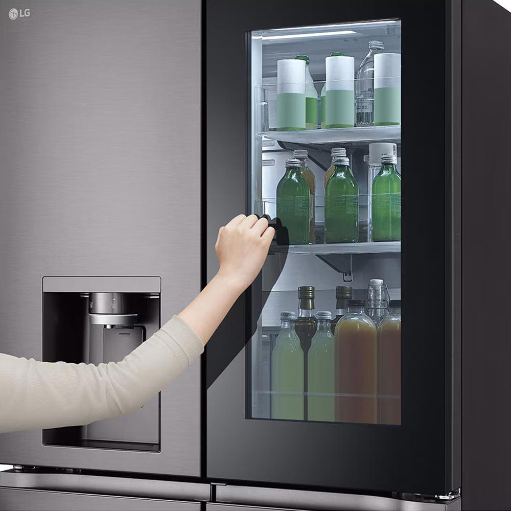 Cửa kính InstaView cho phép bạn chỉ cần gõ nhẹ 2 lần là có thể nhìn thấy bên trong mà không cần mở cửa, một cải tiến giúp giảm thất thoát hơi lạnh và tiết kiệm điện năng. Thiết kế Door-in-Door tách riêng khu vực lưu trữ đồ uống, sữa, snack... giúp việc lấy nhanh thực phẩm trở nên dễ dàng và tiện lợi hơn.