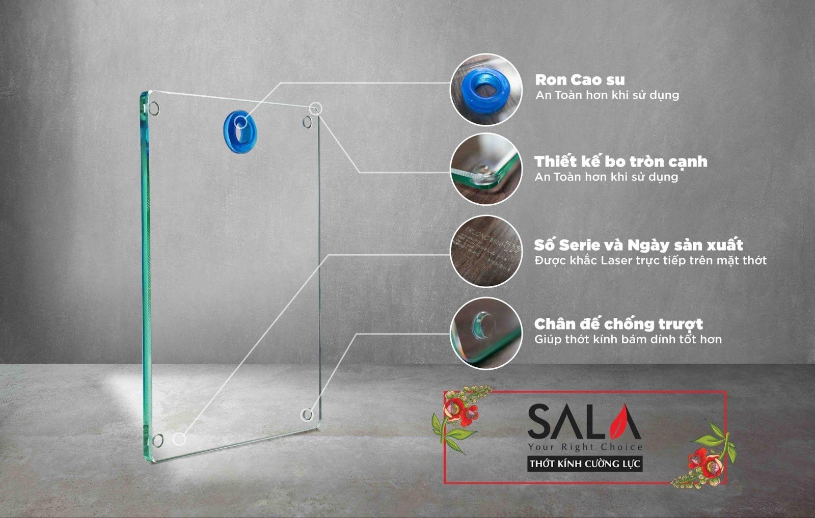 • Điểm nổi bật: SALA khẳng định sản phẩm được sản xuất trên dây chuyền công nghệ nhập khẩu từ Châu Âu và sử dụng phôi kính chất lượng cao. Đặc biệt, thương hiệu công bố sản phẩm đã được Cục An toàn vệ sinh thực phẩm Thụy Điển kiểm định và chứng nhận đạt 100% tiêu chuẩn EU.