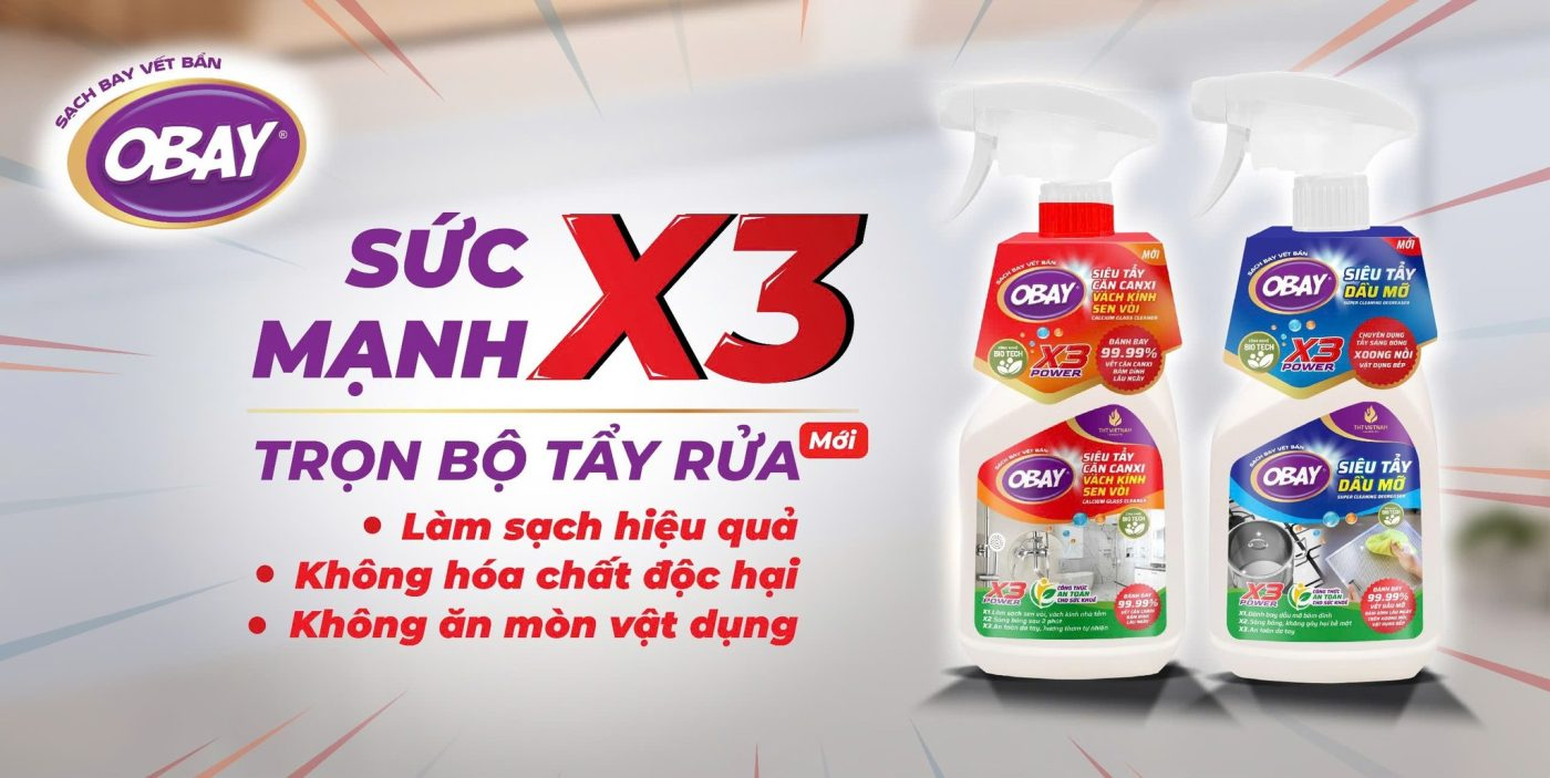 Bộ chất tẩy rửa chuyên dụng Obay gồm hai dòng nổi bật: Tẩy cặn canxi Obay và Tẩy dầu mỡ Obay, đều được phát triển theo tiêu chuẩn an toàn và thân thiện với môi trường.