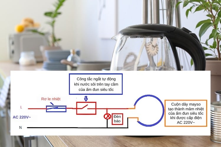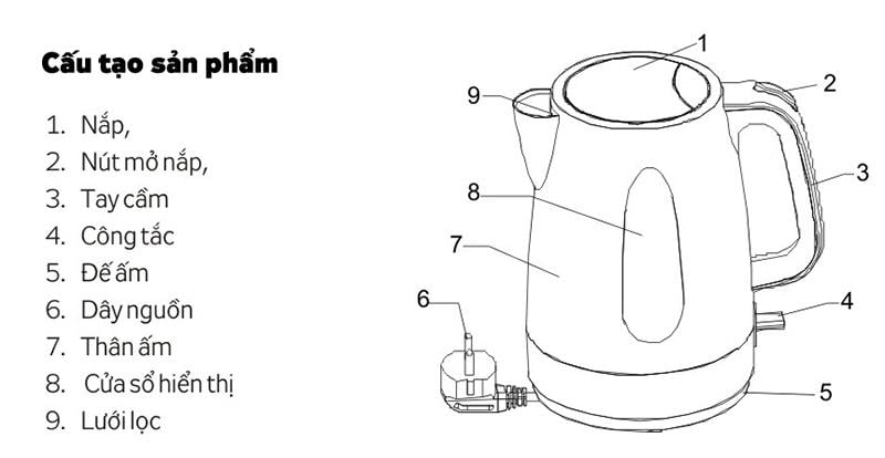 Cấu tạo cơ bản của một chiếc ấm siêu tốc.