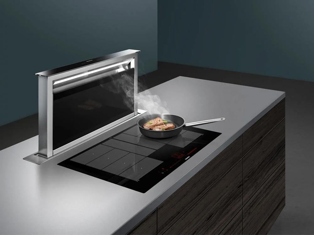 Dòng máy âm bàn đại diện cho thẩm mỹ cao cấp, giải phóng hoàn toàn tầm nhìn và không gian phía trên cho khu vực bếp đảo.