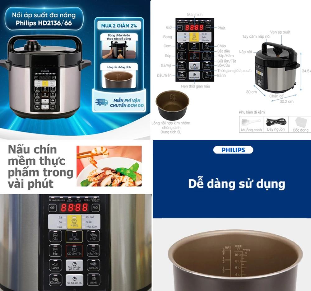 Nồi áp suất điện tử thương hiệu Philips HD2136/66