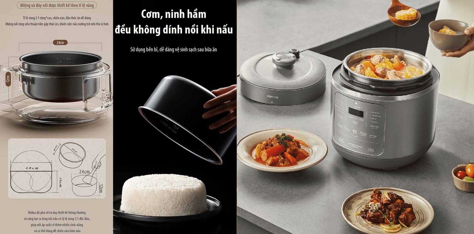 • Đa chức năng nấu nướng: Ngoài nấu cơm, nồi có thể đảm nhận vai trò của một nồi hầm (ninh xương, nấu soup), nồi luộc, nồi hấp (bánh bao, rau củ), chảo xào, và thậm chí là máy làm bánh hoặc ủ sữa chua.