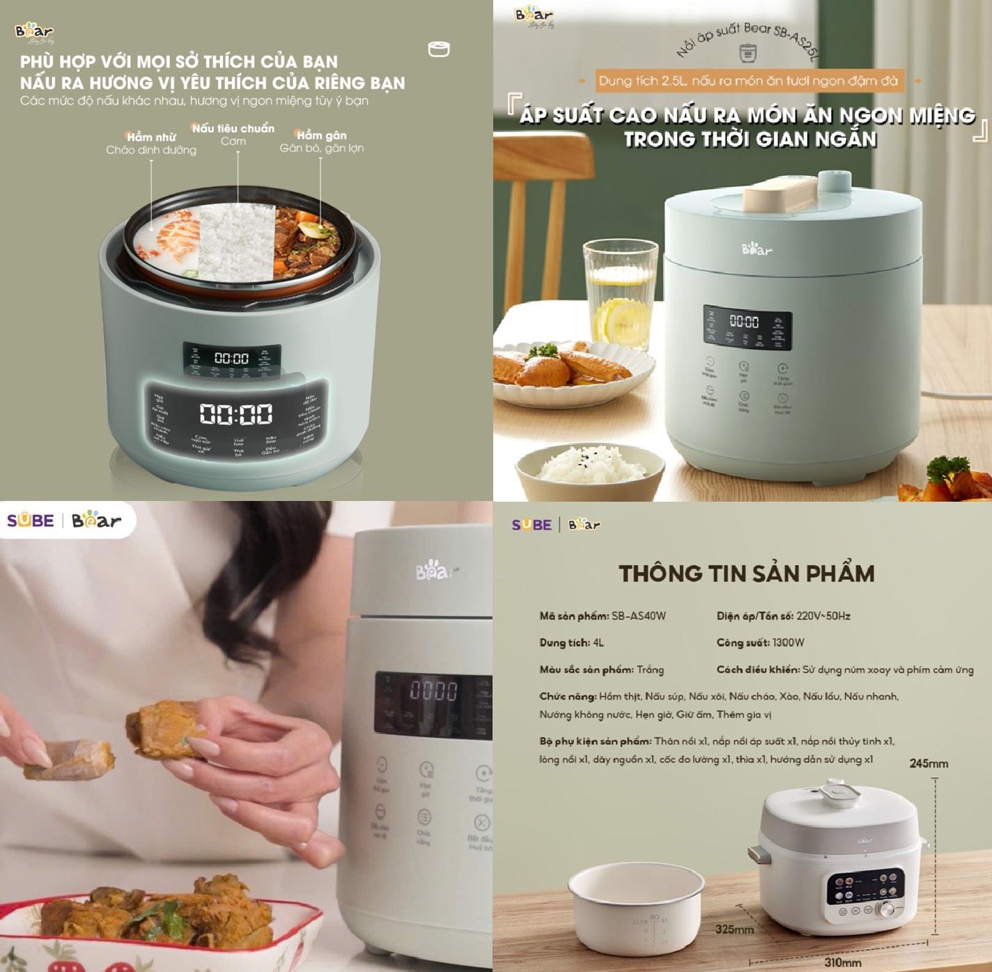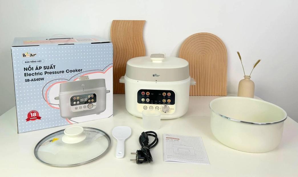 Tuy nhiên, dung tích phải đi kèm với công suất. Nhiều người dùng chỉ nhìn vào thời gian nấu (ví dụ: 15 phút hầm) mà quên mất thời gian pre-heat để nồi đạt đến mức áp suất cần thiết. Một chiếc nồi 6 lít 10 với công suất chỉ 900W sẽ mất khá nhiều thời gian để đun sôi lượng thực phẩm lớn. Ngược lại, một chiếc nồi 4 lít như Bear SB-AS40W có công suất lên đến 1300W.
