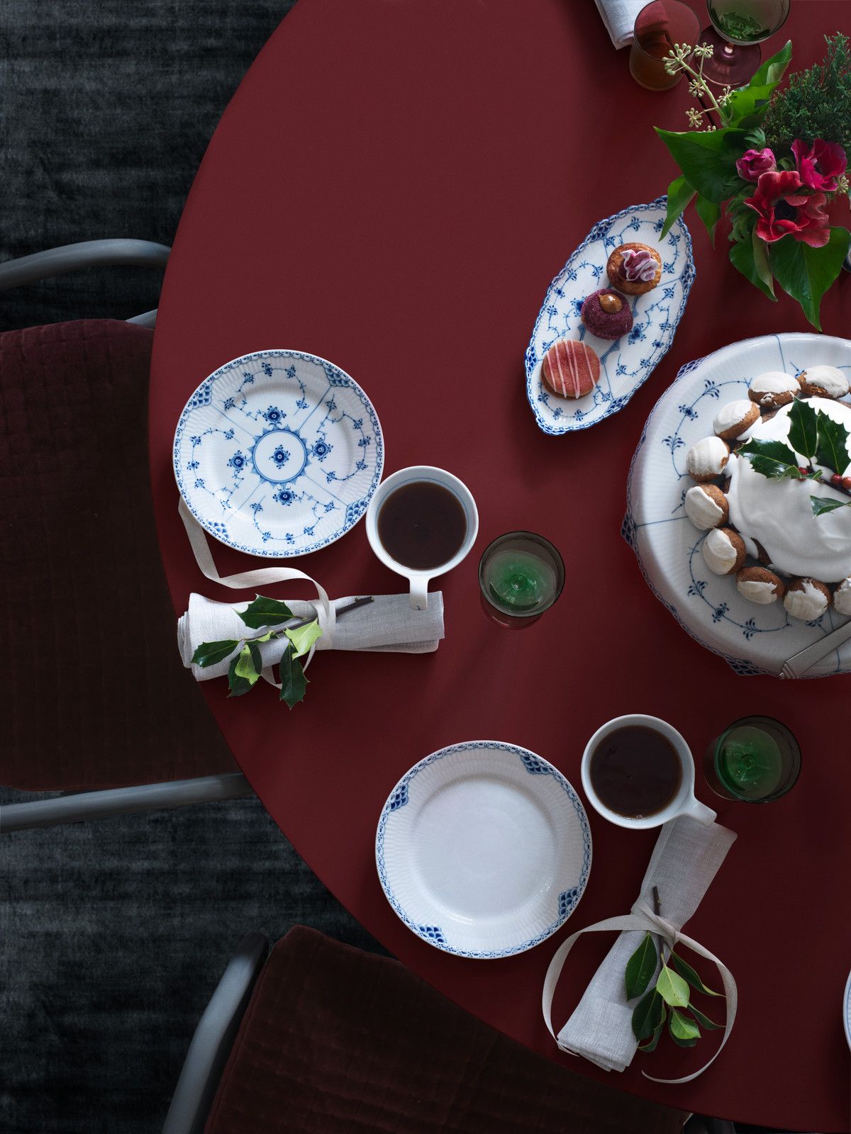 Họa tiết sản phẩm được vẽ tay 100% bằng cọ từ các nghệ nhân có tối thiểu 10 năm kinh nghiệm tại Royal Copenhagen, các họa tiết được vẽ dưới men, trải qua nhiều lần nung để hoàn thiện và thành phẩm là lớp men trong suốt bảo vệ màu sắc của từng nét vẽ.