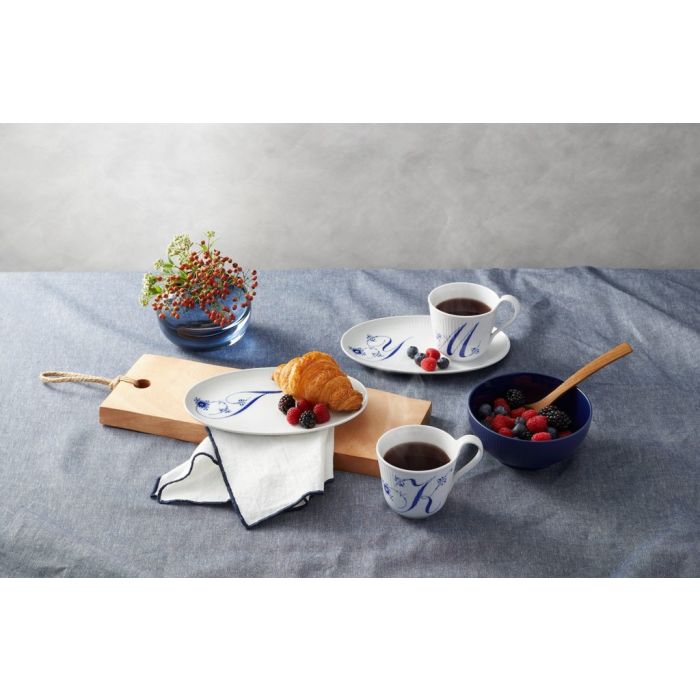 Cốc sứ Alphabet được lấy cảm hứng từ bộ sưu tập Blue Fluted Plain - mẫu hoa văn đầu tiên của Royal Copenhagen và đã tồn tại suốt 240 năm qua.