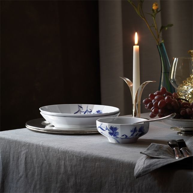 Mỗi bộ đồ ăn blomst đều mang những bông hoa kết xuất đẹp mắt, được vẽ tay bằng kỹ thuật một nét cọ, duy nhất được phát triển riêng cho thiết kế mới này. Kỹ thuật một nét cọ này làm nổi bật ba chiều của họa tiết, tạo cho những bông hoa một vẻ ngoài sống động, sống động.