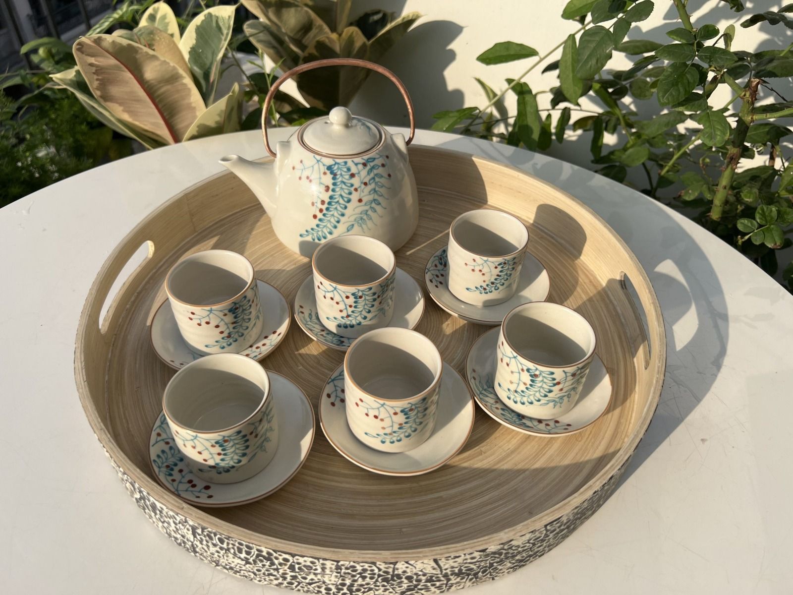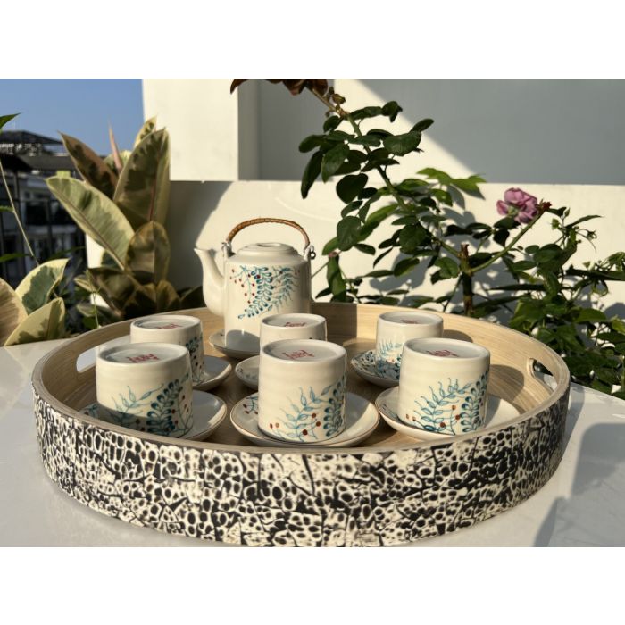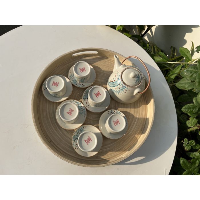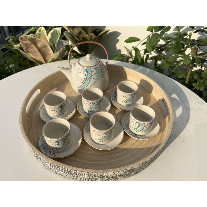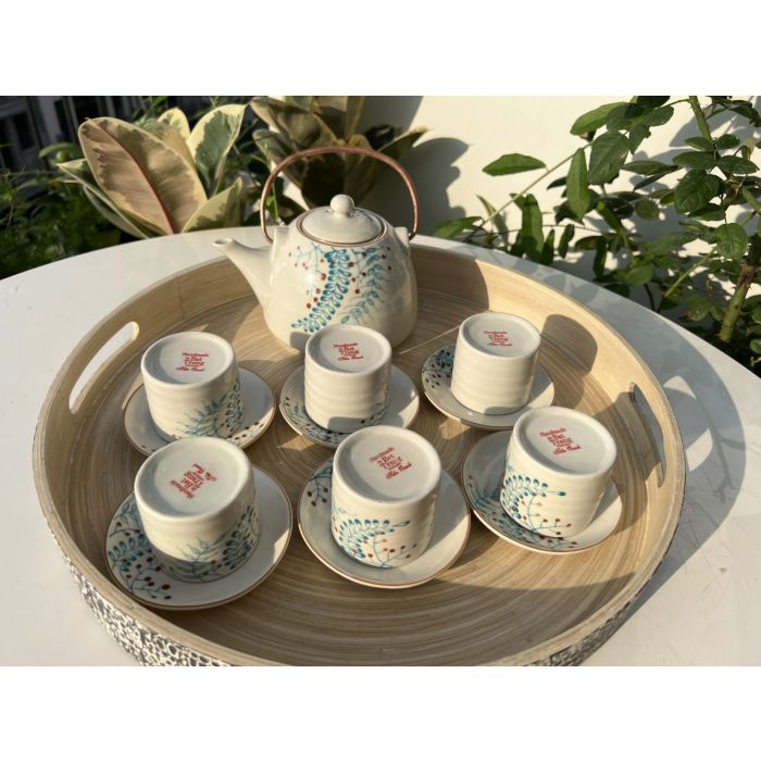 | Tên Sản Phẩm | Ấm chén vẽ lá xanh hoa nâu |