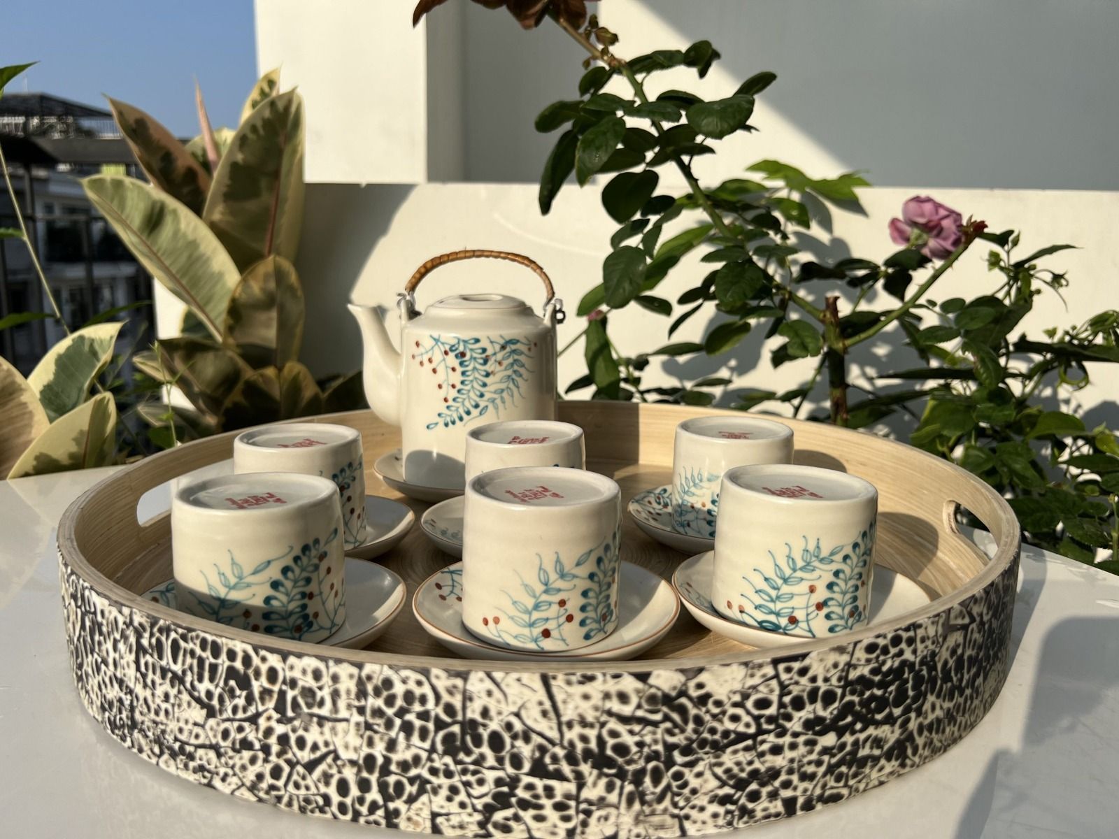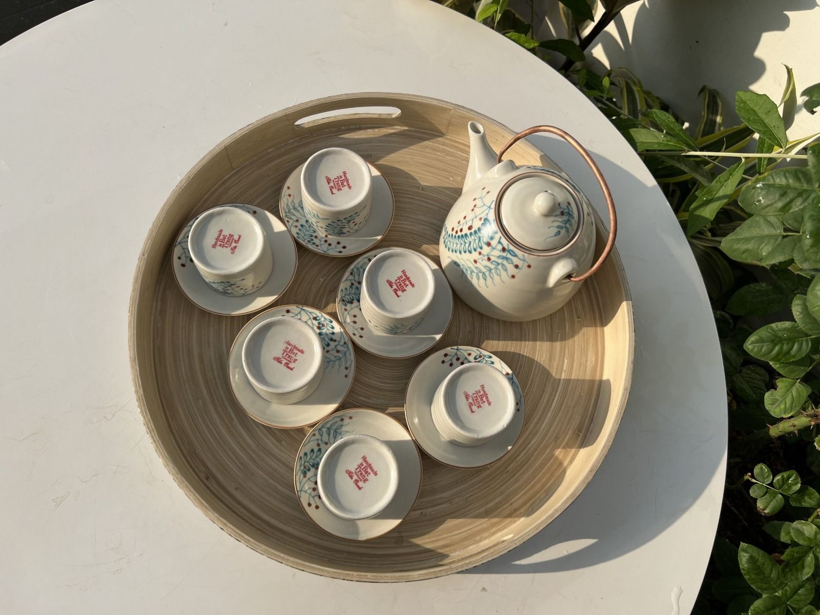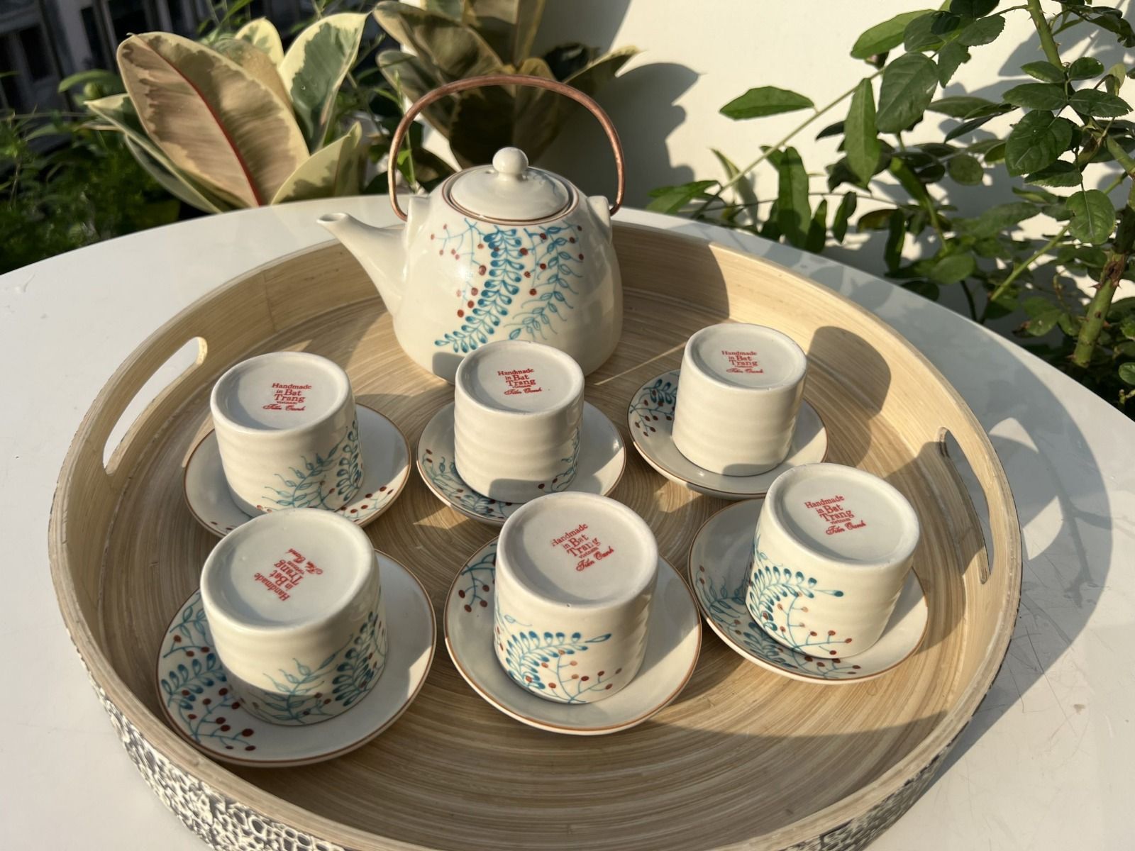 | Tên Sản Phẩm | Ấm chén vẽ lá xanh hoa nâu |