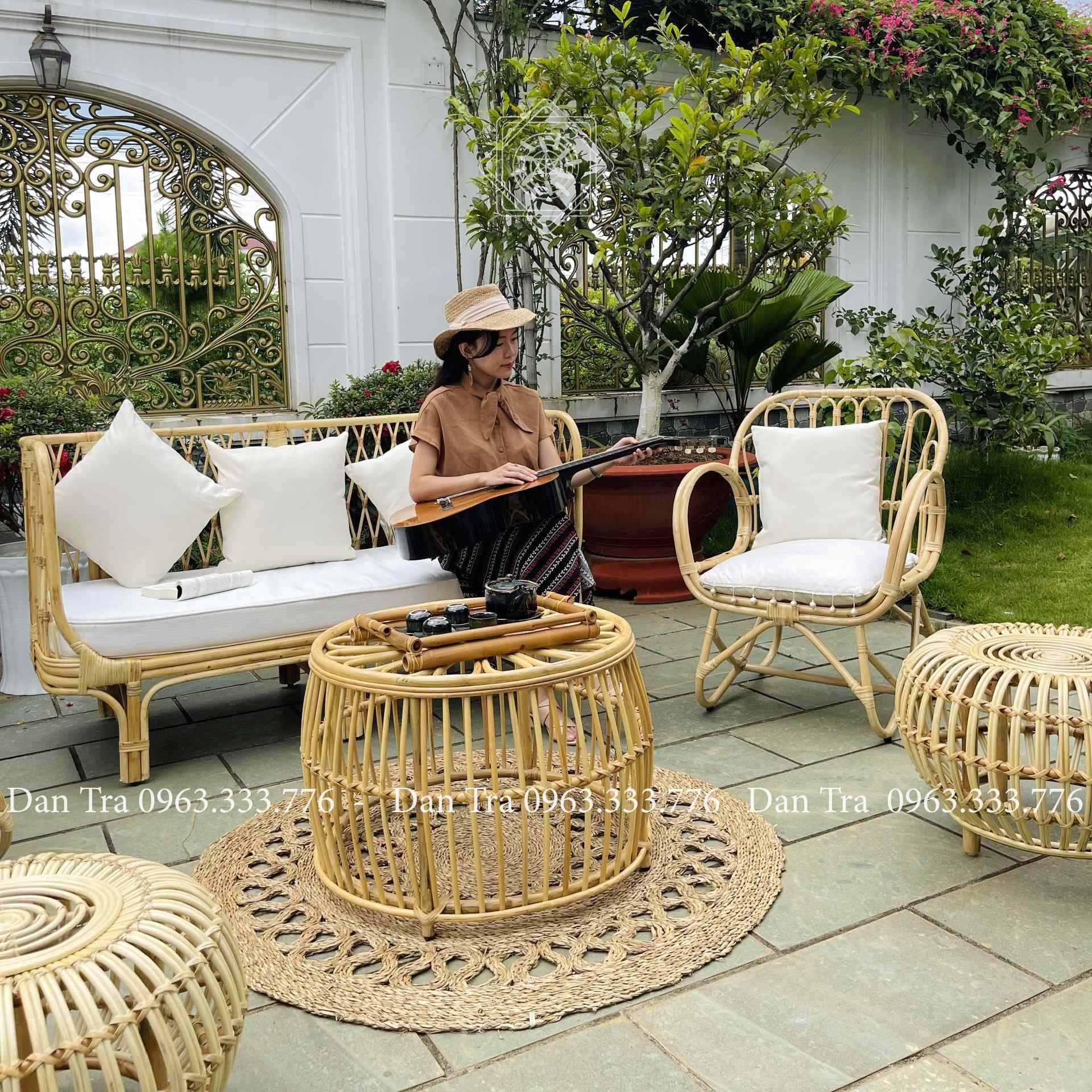 Bộ bàn ghế mây decor phòng khách không chỉ dùng để ngồi thư giãn uống trà, xem phim, đọc sách hay trang trí nội thất mà còn mang lại sự tự nhiên và thân thiện với môi trường sống xanh